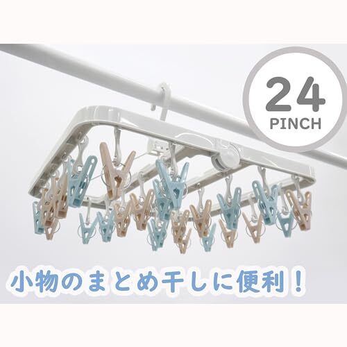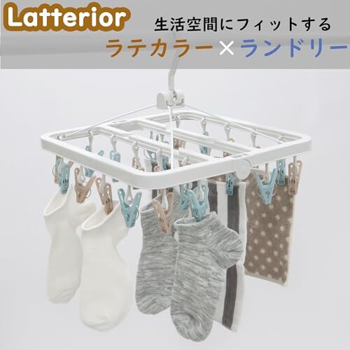 東和産業 洗濯 ハンガー 物干し ラテリア 小物干しハンガー 24ピンチ ホワイト ラテカラー くすみカラー 可愛い 洗濯バサミを交換できる 外干し 室内干し