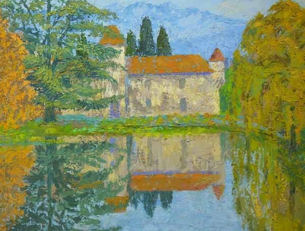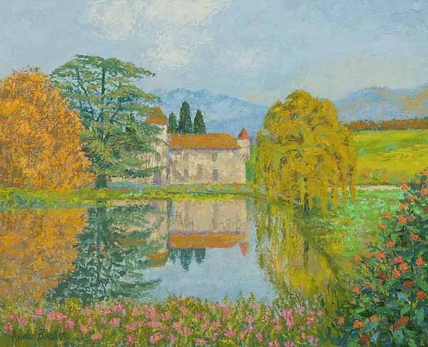 *真作*超大作大名品 アンドレ・バルリエ「ガスコーニュの城」40号キャンバス 油彩画/ANDRE BARLIER/ORIGINAL PAINTING/フランス画家/絵画