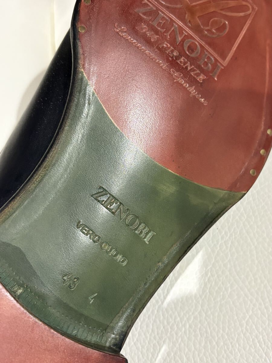 イタリア製フィレンツェの銘靴【ZENOBI ゼノビ】新品未使用 スキンステッチ グッドイヤー製法 プレントゥ 43サイズ ブラック SU633005