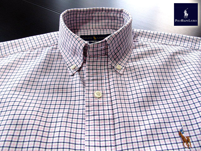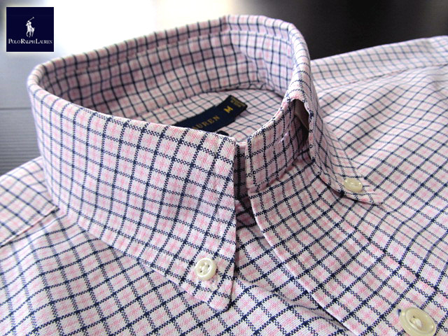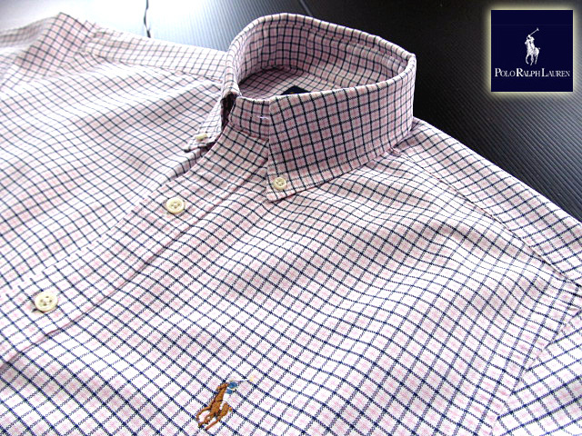 ★500円スタート!ラルフローレン RALPH LAUREN ボタンダウンシャツ 長袖 Mサイズ 希少品 ハンサムチェック ピンク×ブラック×ホワイト