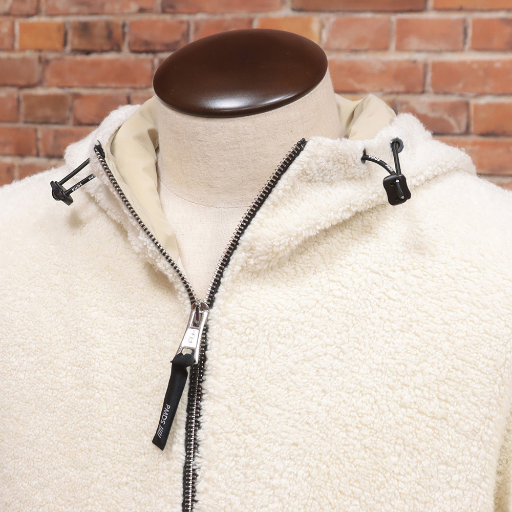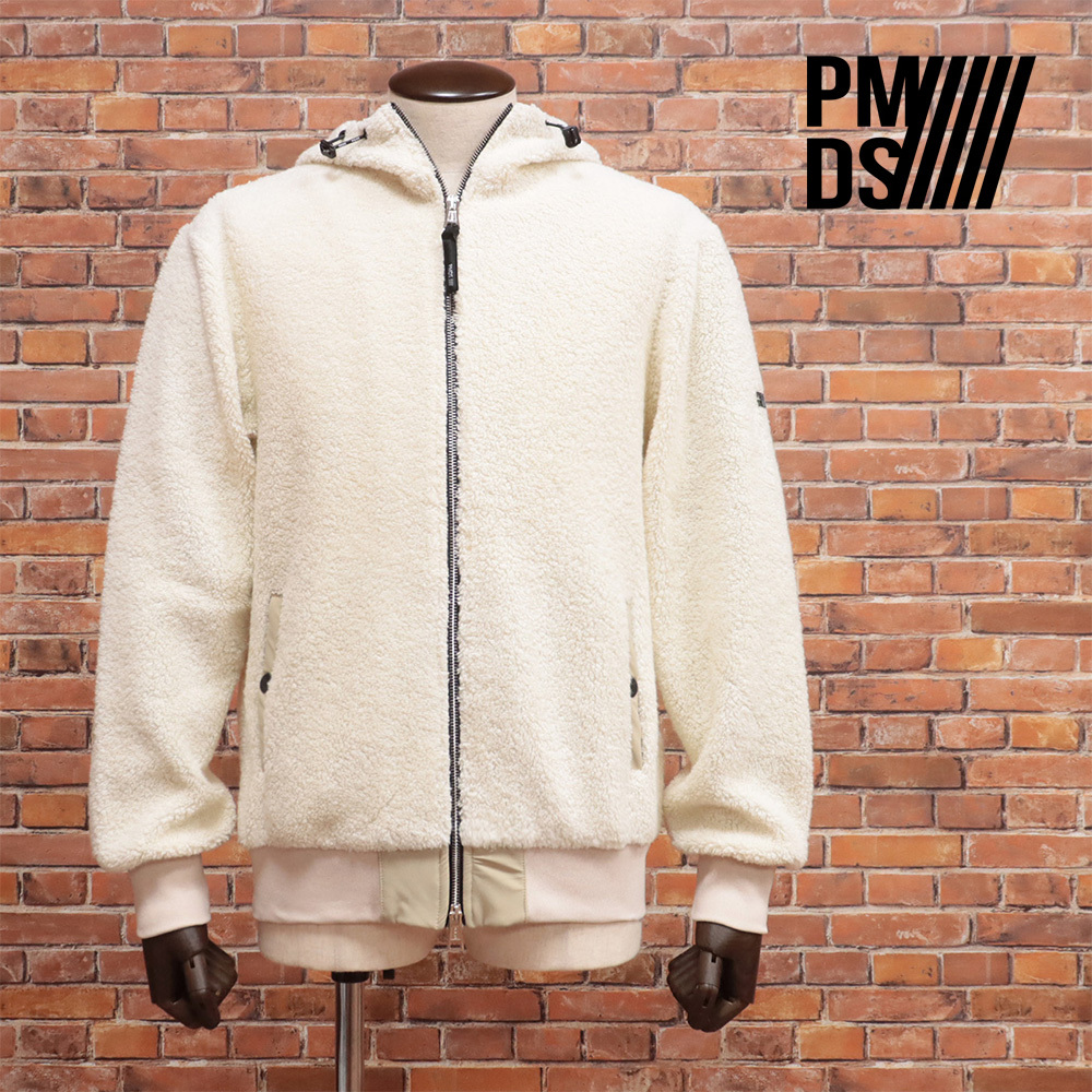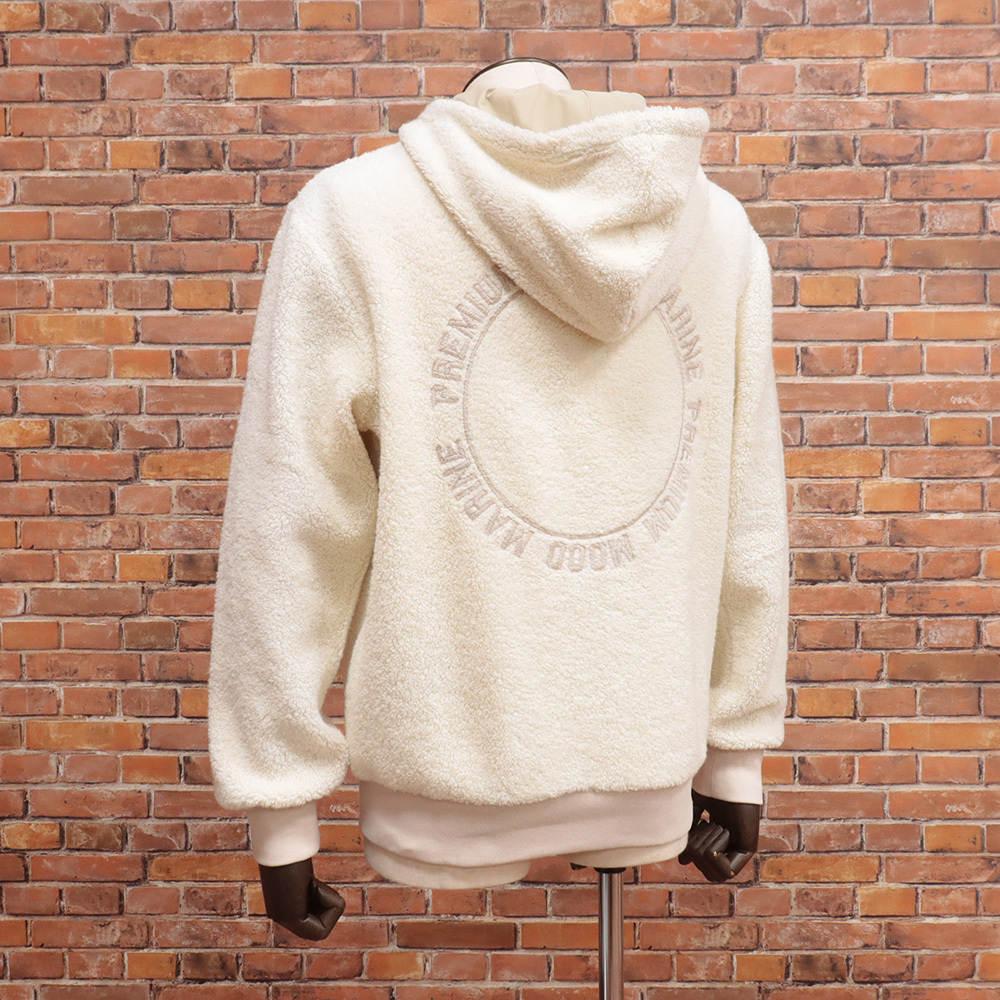 1円/24AW/PMDS/Mサイズ/ボアニット パーカー ANGEL ふわもこ あたたか バック ロゴ刺繍 イタリア製 新品/アイボリー/ma143/