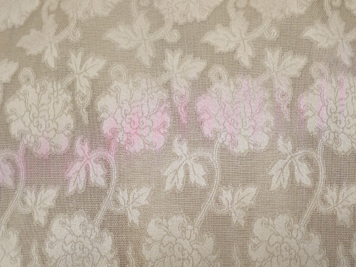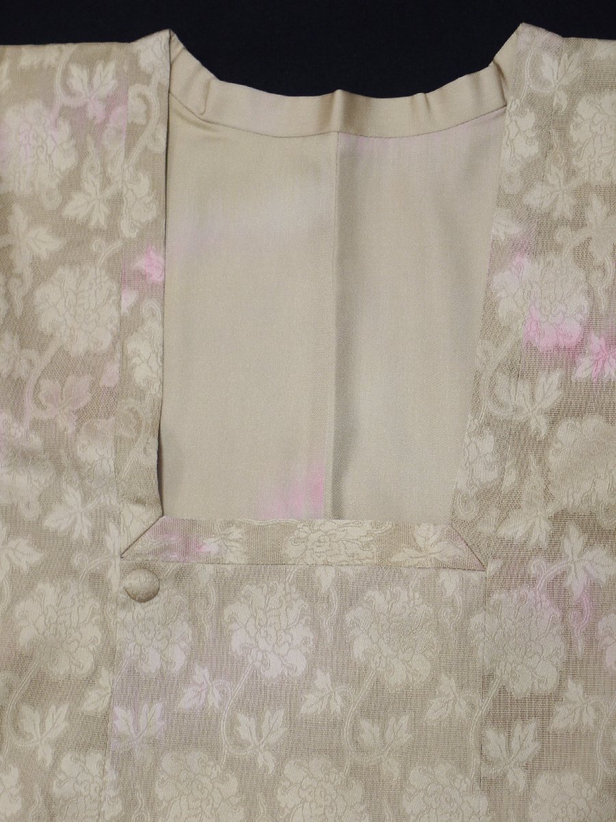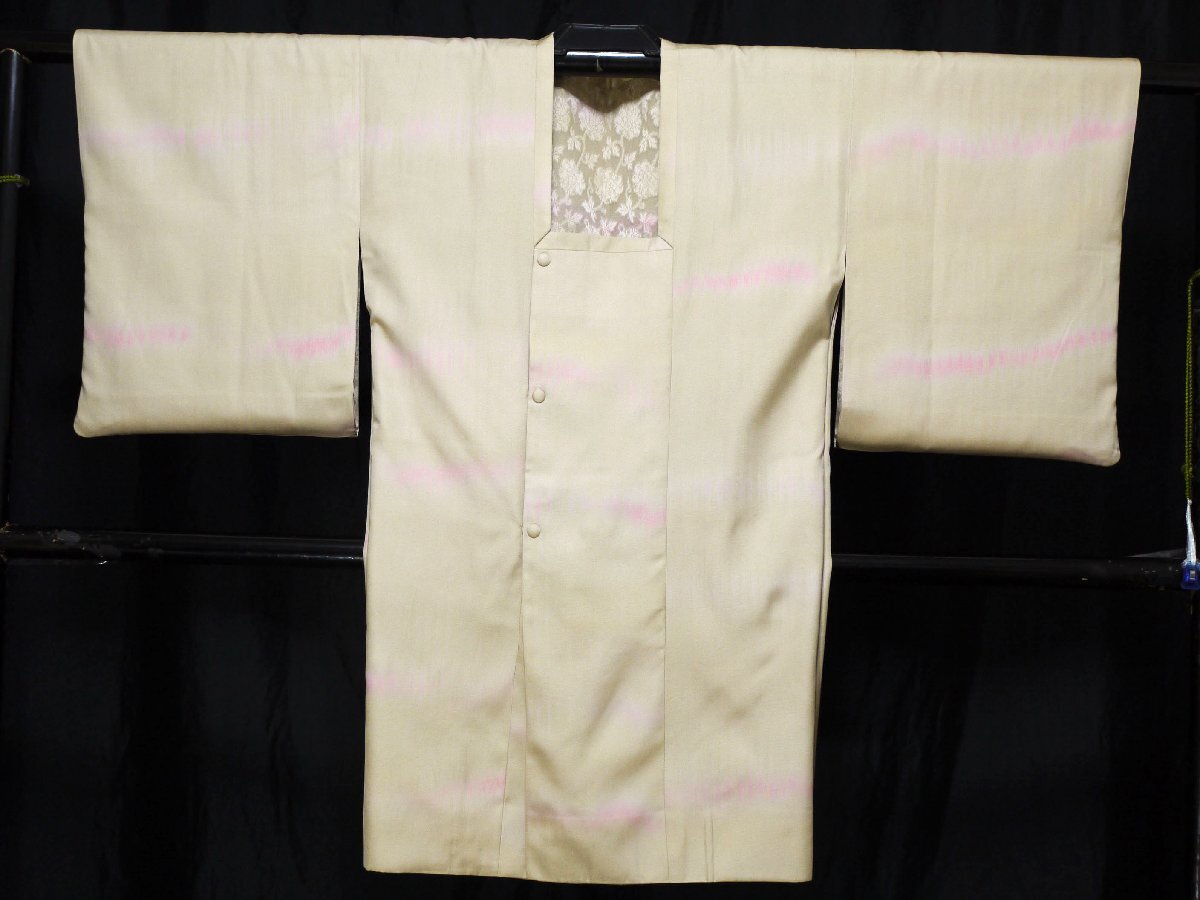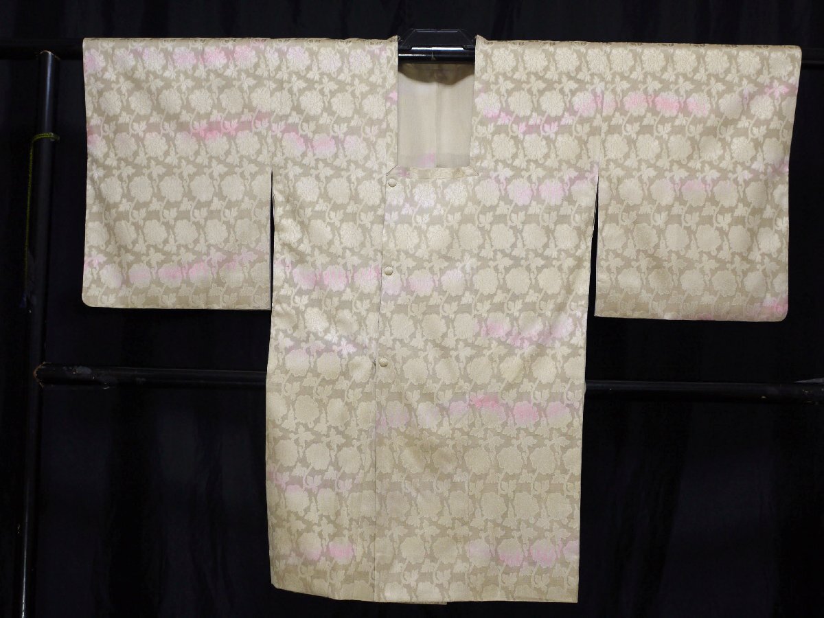 | 商品名 | 道行【能州紬・絲藝苑】リバーシブル 牡丹唐草紋紗×能州織 薄ベージュ地 ピンク暈し・95㎝ 未着用 |