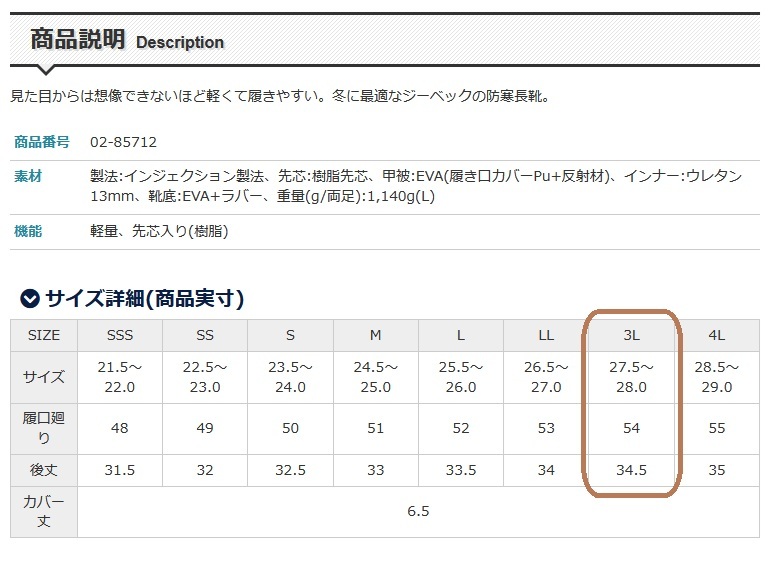 品番;#85712、サイズ:3L(27.5~28cm)、カラー:OD