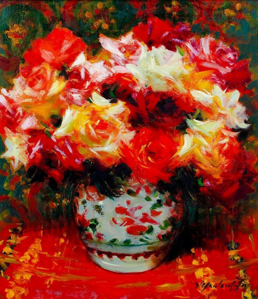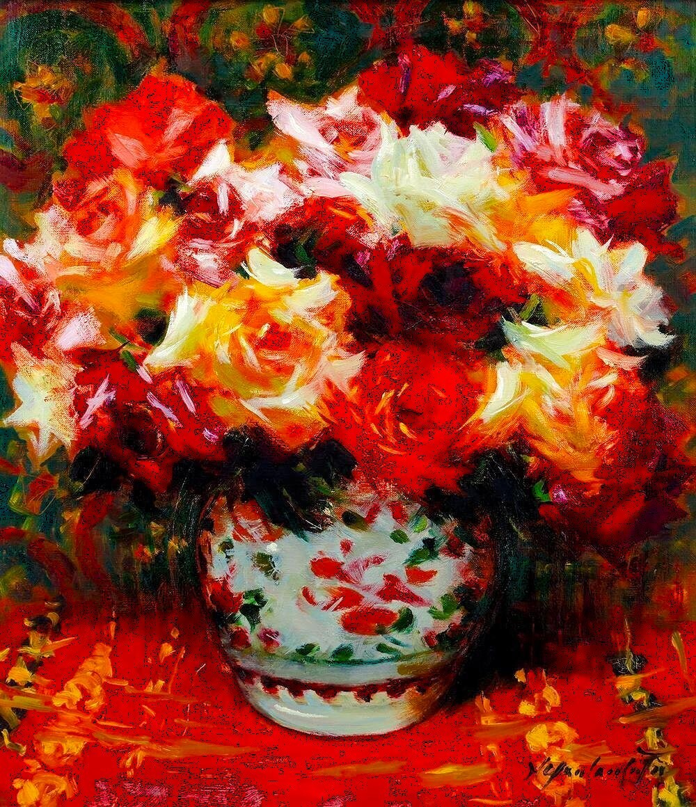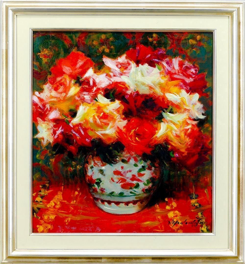 低価格再出品この価格大きな赤字です。必ず見れば驚く香りを感じる薔薇 山本彪一 には珍しい大作 絶品油彩10号真作保障 4号 6号はそれなりにありますが 10号と大作で美しさ 存在感迫力ともに別格です。