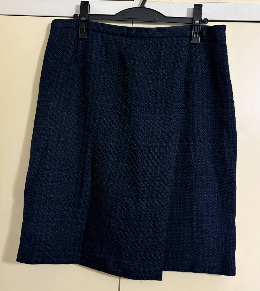 大きいサイズ46 13号15号untitledアンタイトル紺ラメツイードスカート前面スリット巻きスカート風