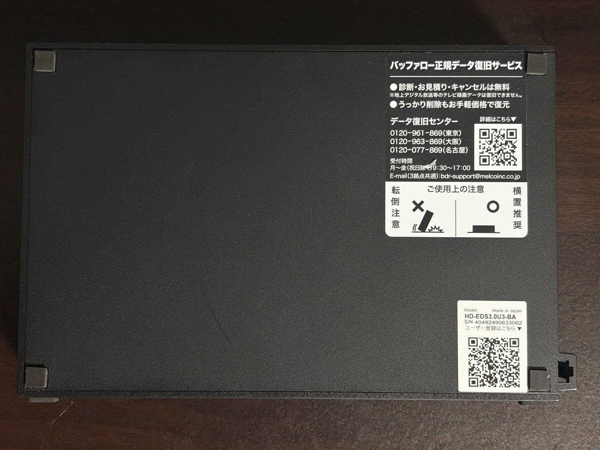 Buffalo 外付けHDD 3TB HD-EDS3.0U3-BA USB3.1 データ完全消去済