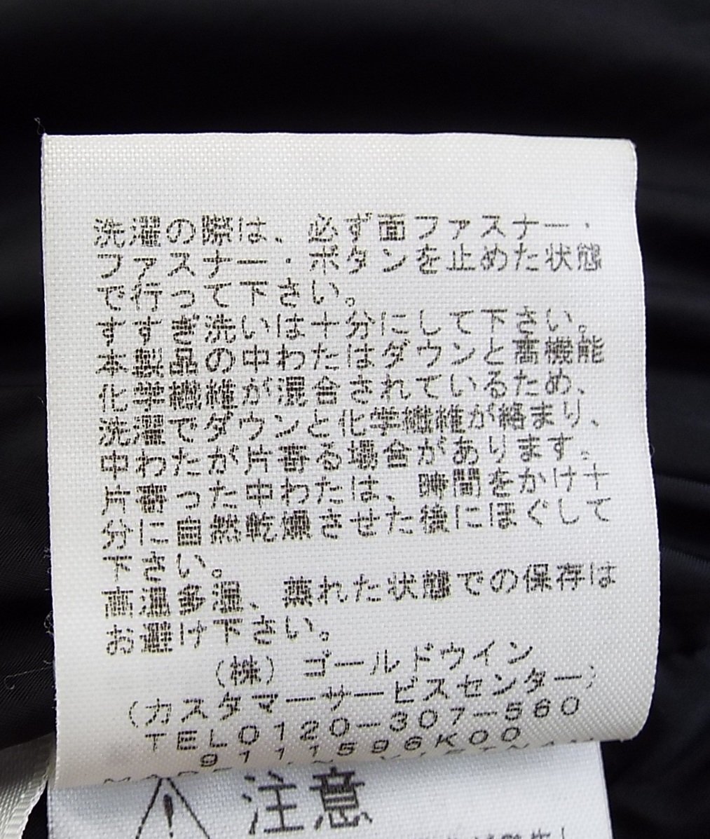 表地:ナイロン 100%(コーティング等樹脂加工) 中わた:ダウン 72%、レーヨン 20%、フェザー 8% 裏地:ナイロン 100% |