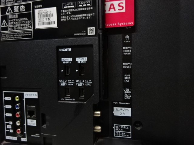 | 入出力端子 | テレビに外付けHDD HDMI入力端子×4(内1 ARC対応)、LAN端子、USB端子×3、 |