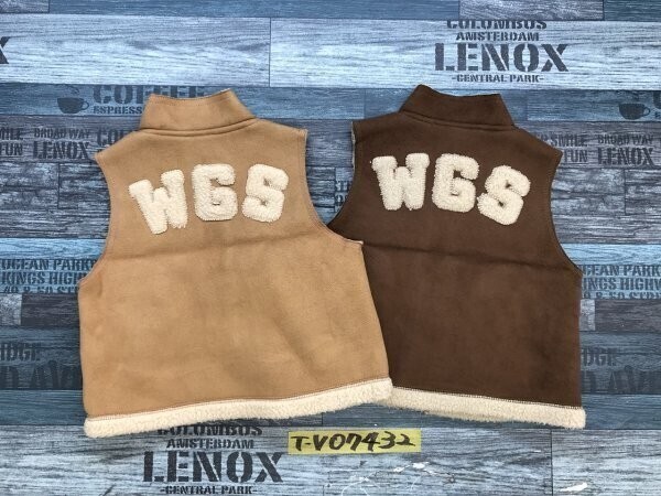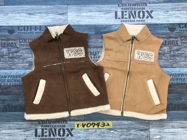 キッズ ベビー ムートン スエード ボアジップベストジャケット 2点セット まとめ売り 90サイズ 茶・ベージュ です。
