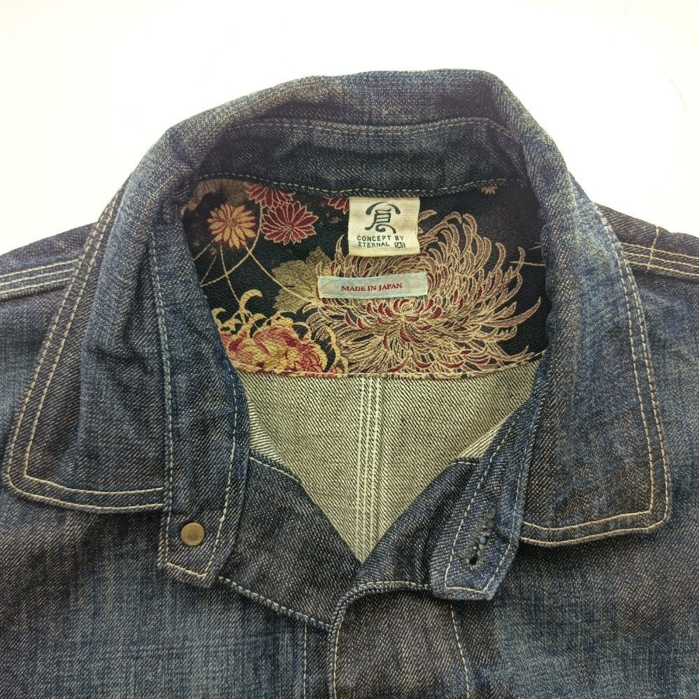 | 倉 備中倉敷工房 ETERNAL エターナル 和柄 デニムジャケット サイズLL メンズ MADE IN JAPAN ファッション ジーンズ アウター 中古 |