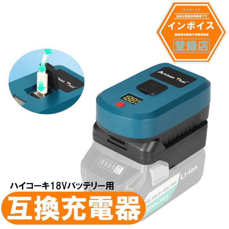 アルチザンツール ハイコーキ互換充電器Type-C入力型アダプター ハイコーキ18V専用 タイプC充電器アダプター (ハイコーキ18Vバッテリー充電