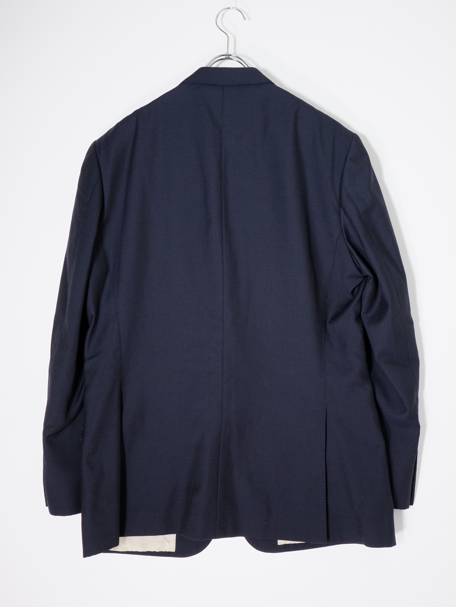 【素材感】ドット織のスーツ地 【透け感】なし 【裏地】あり 【ストレッチ】なし 【開閉デザイン】ボタン 【付属品(取り外し可)】なし 【商品情報】日本製 2ボタン・総裏地・サイドベンツ。 |