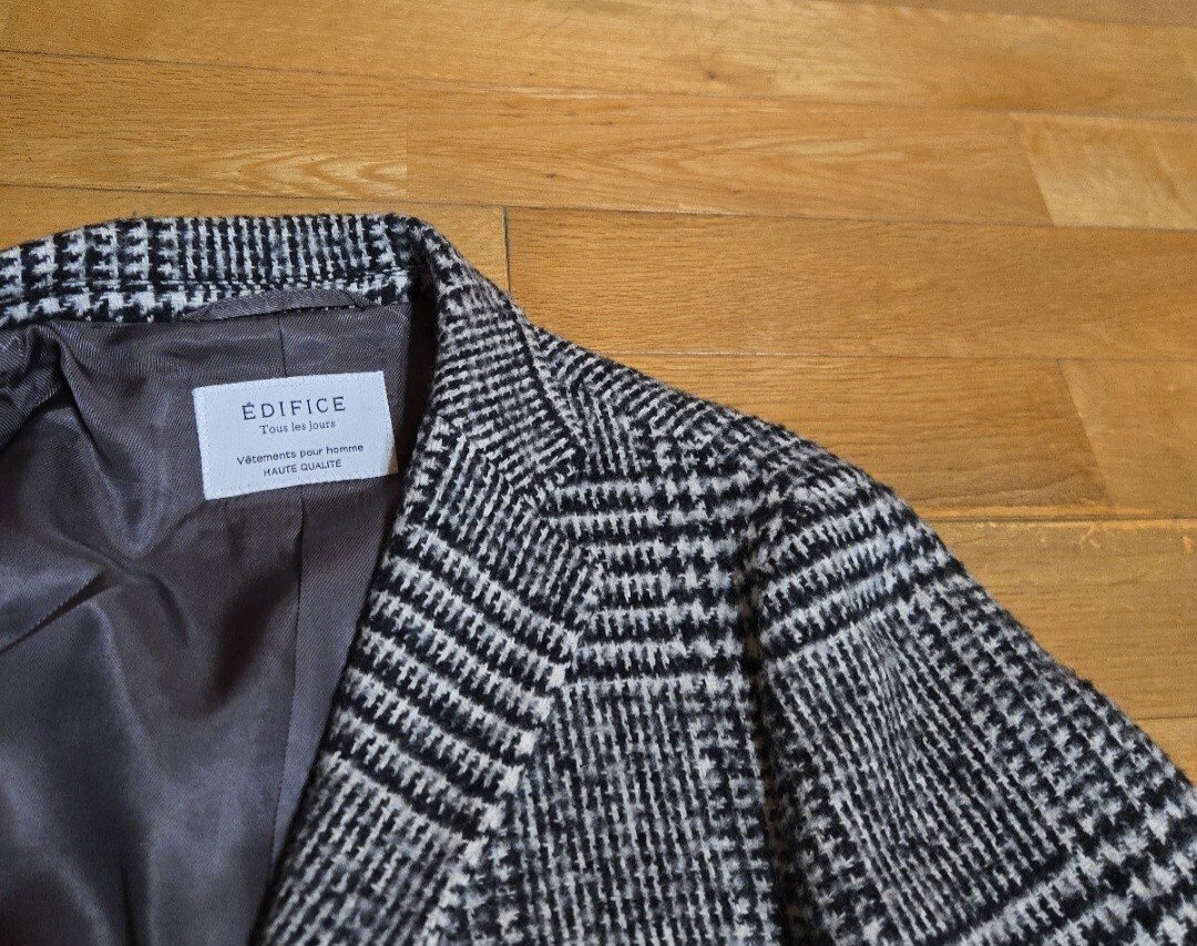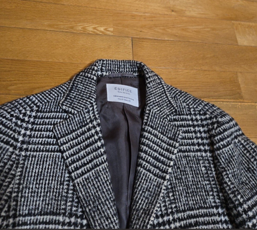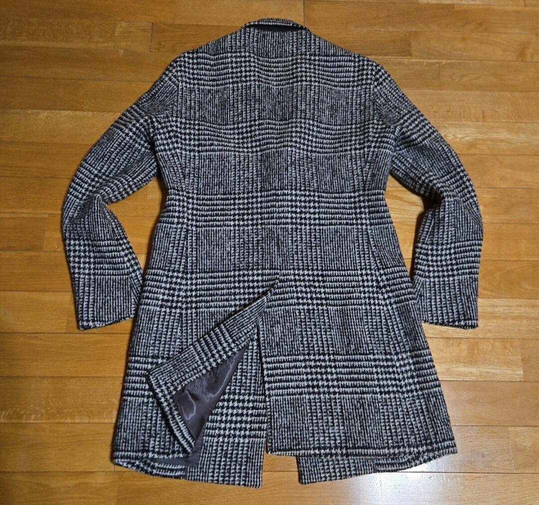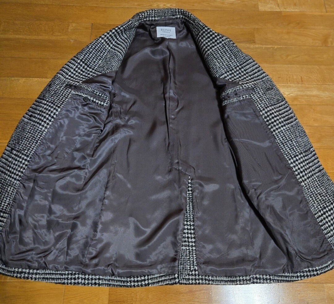 ☆【エディフィス/EDIFICE】秋冬高級◎『グレンチェック織り起毛ブークレ調メルトンウール×シルク』生地 英国調の極暖感◎グレー チェスターコートです。お色は秋冬時期に重宝するグレートーン。sizeは44(S-M位)です。