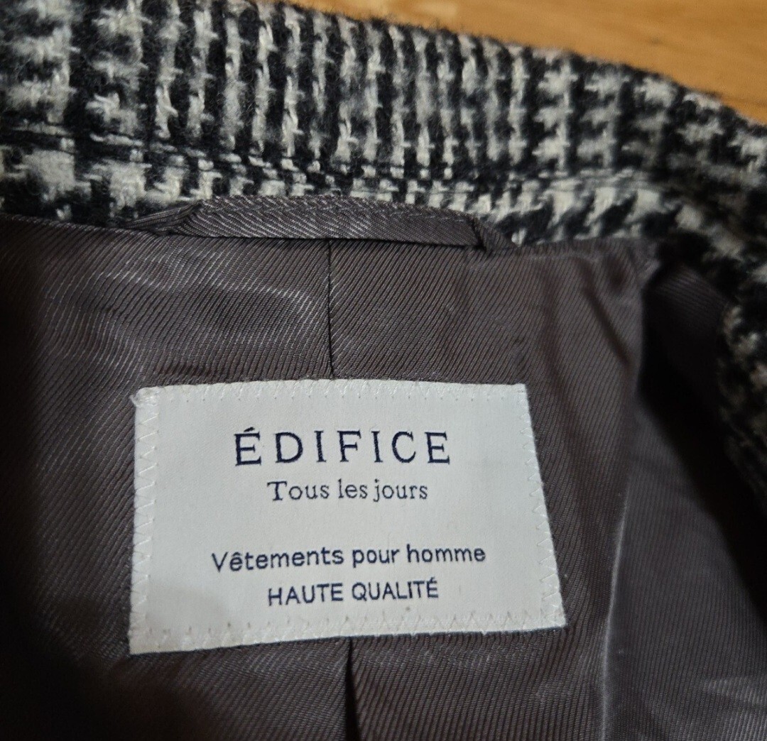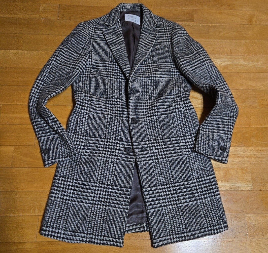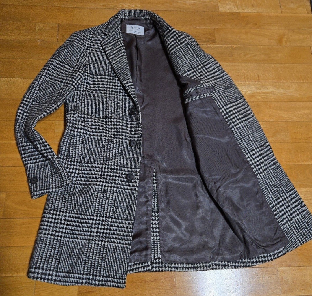 ☆【エディフィス/EDIFICE】秋冬高級◎『グレンチェック織り起毛ブークレ調メルトンウール×シルク』生地 英国調の極暖感◎グレー チェスターコートです。お色は秋冬時期に重宝するグレートーン。sizeは44(S-M位)です。
