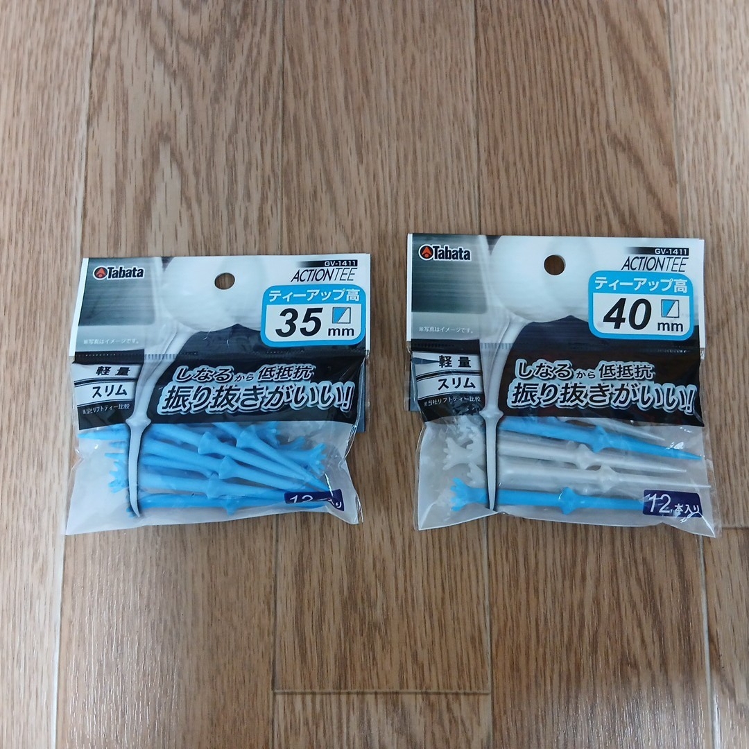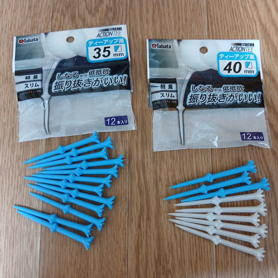 タバタの段付きティー、ティーアップ高 35mm12本と40mm9本入っています。