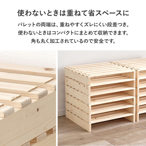 パレット状のすのこ板を並べるだけの簡単設置で移動や模様替えも楽々。 アレンジがしやすく、ライフスタイルが変わっても長く使用できます。 ■本体サイズ:(約)幅150×奥行200×高さ9cm ■連結パーツ付き(縦用9個、横用8個) ■脚裏フェルト付き ■生産地:ベトナム ■素材・成分:主材:天然木(パイン) 着日指定をされる場合は、ご注文日の5日後から1か月以内での指定をお願い致します。 ************ 大型家具の場合 配送先地域によっては発送後8~10日ほどかかる場合があります ************ |