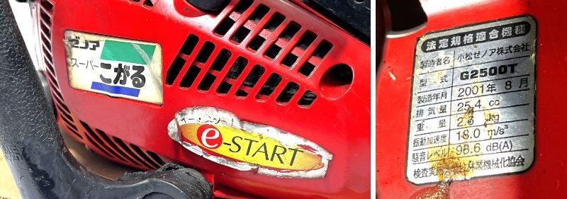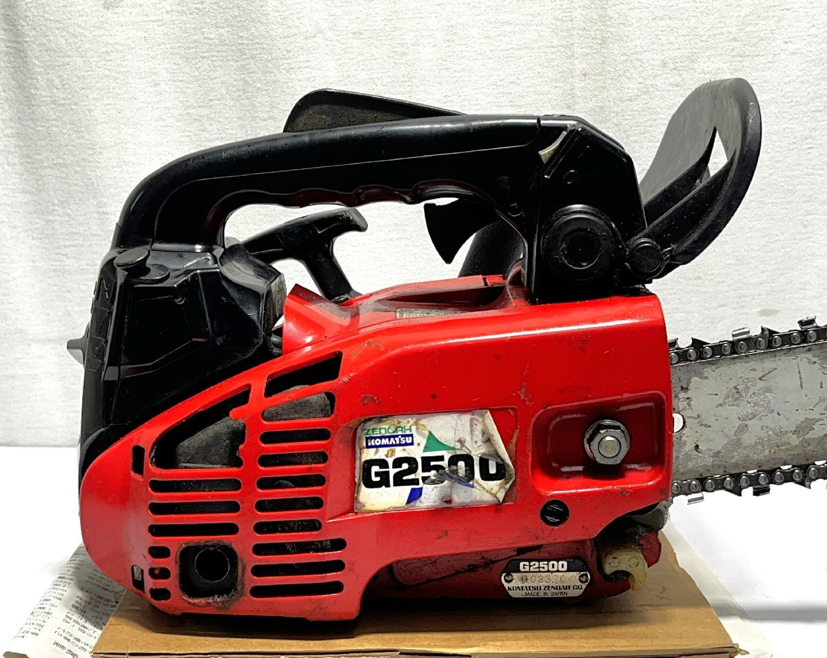 ▽ゼノア スーパーこがる エンジンチェンソー G2500T 排気量:24.4cc ジャンク・簡単な動作確認のみ▽013551