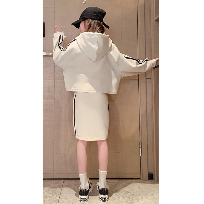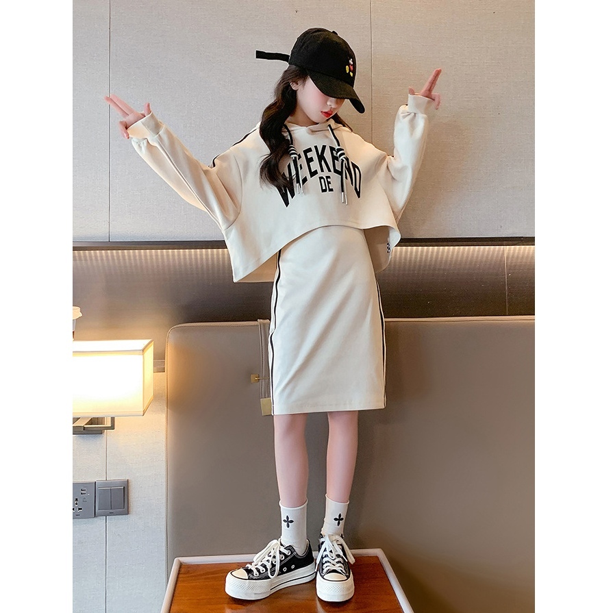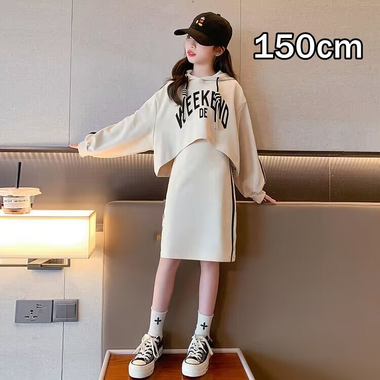 送料一律230円 子供服 韓国風セットアップ スウェット2点セット ベージュ 150cm トップス×ワンピース 女の子 キッズ パーカー 上下セット