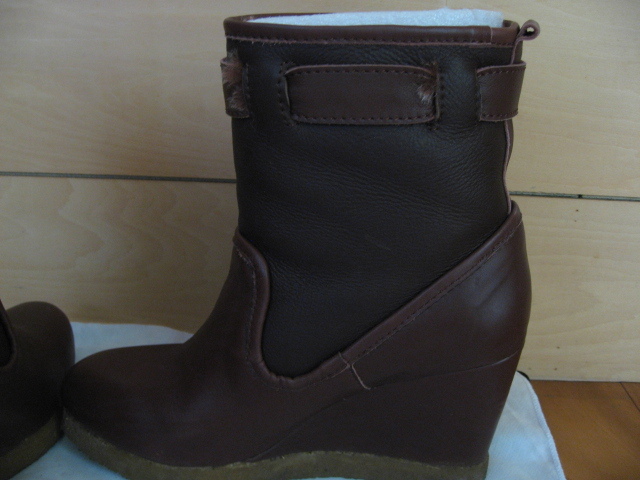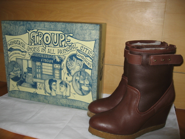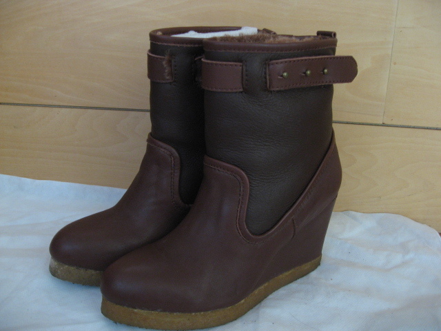 美品 ムートン シープスキン レザー F-Troupeエフトゥループ ウエッジソールショートブーツ 37 23.5㎝ ヒール8.5㎝ ブラウン チョコレート