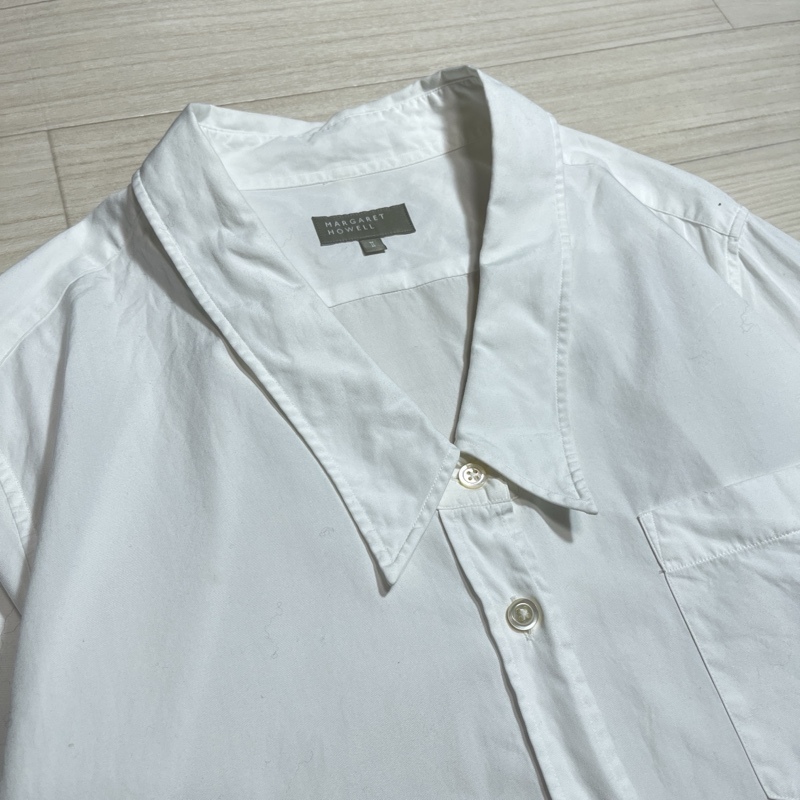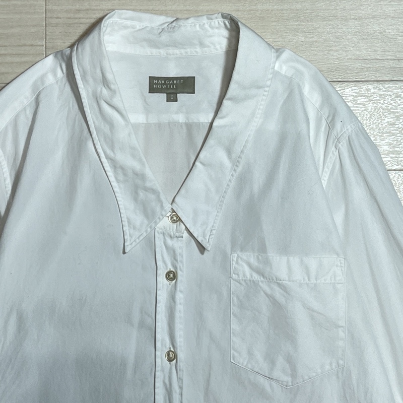 MARGARET HOWELL/マーガレットハウエル/Vカラー コットン L/S シャツ/長袖シャツ/ホワイト