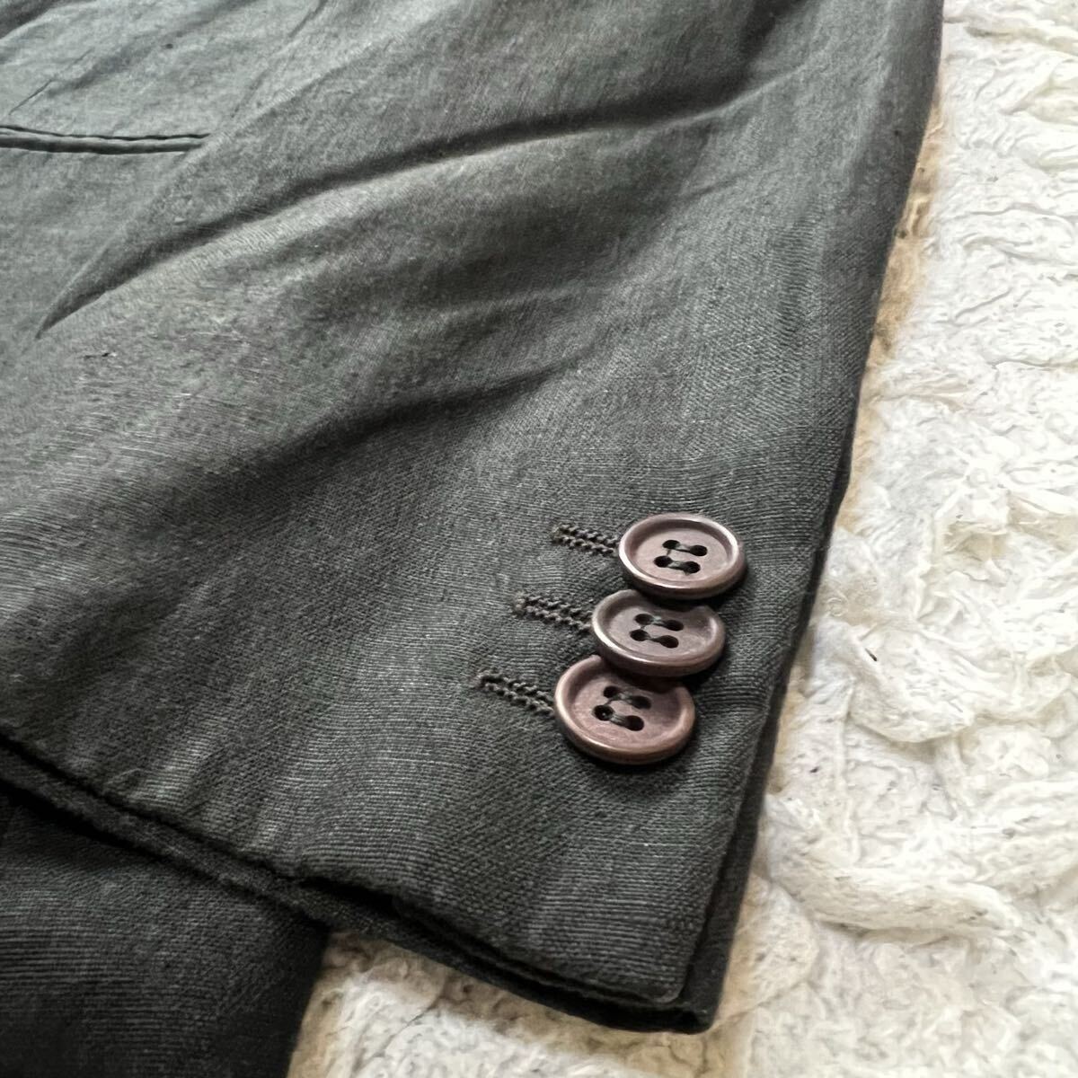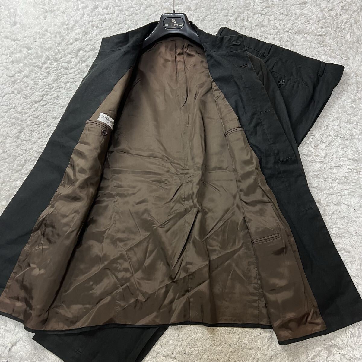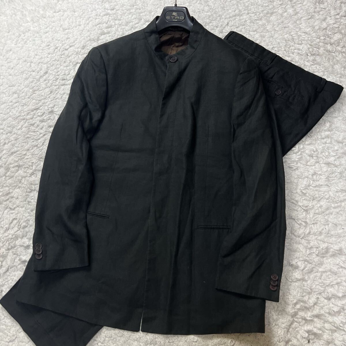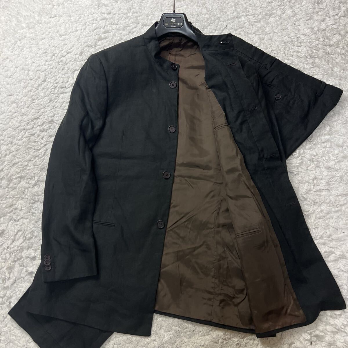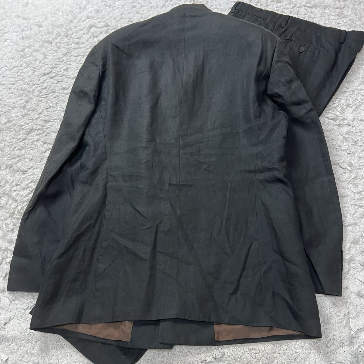 美品 / スーツセットアップ(上下) / マオカラー / ノーカラー仕様 / ダークグレー / リネン100% / 総裏地 / 最高級ライン / 5ボタン / サイズ52(2XLサイズ)