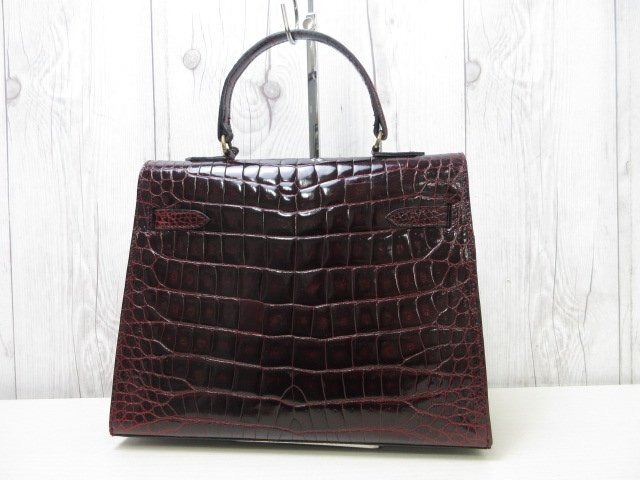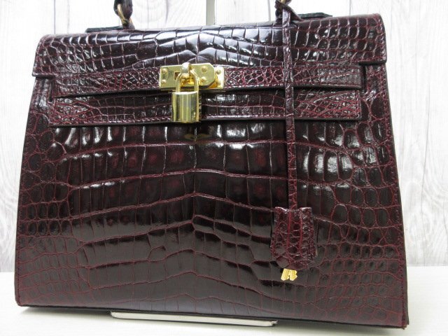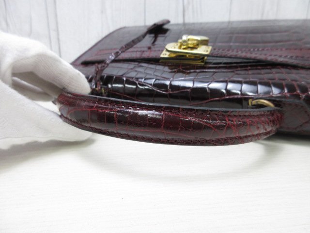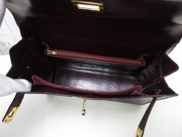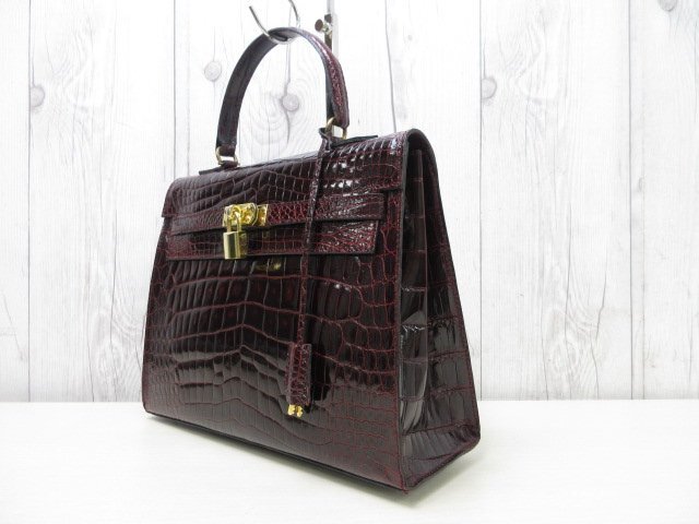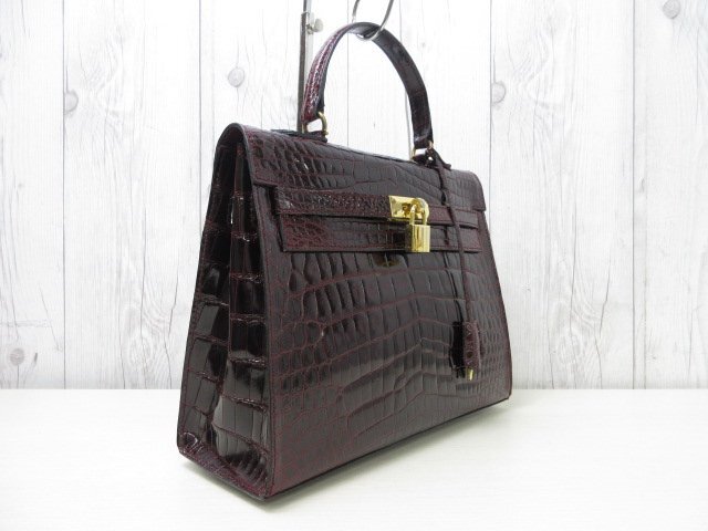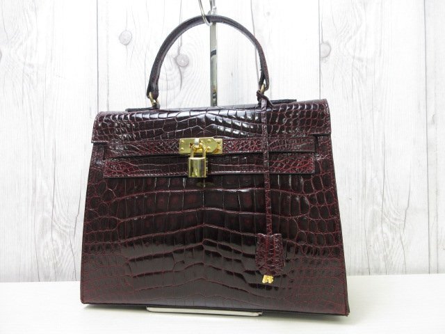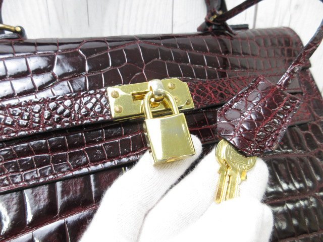 | 極美品 艶 クロコダイル カデナ鍵付 ハンドバッグ バッグ ボルドー 91666 | ||