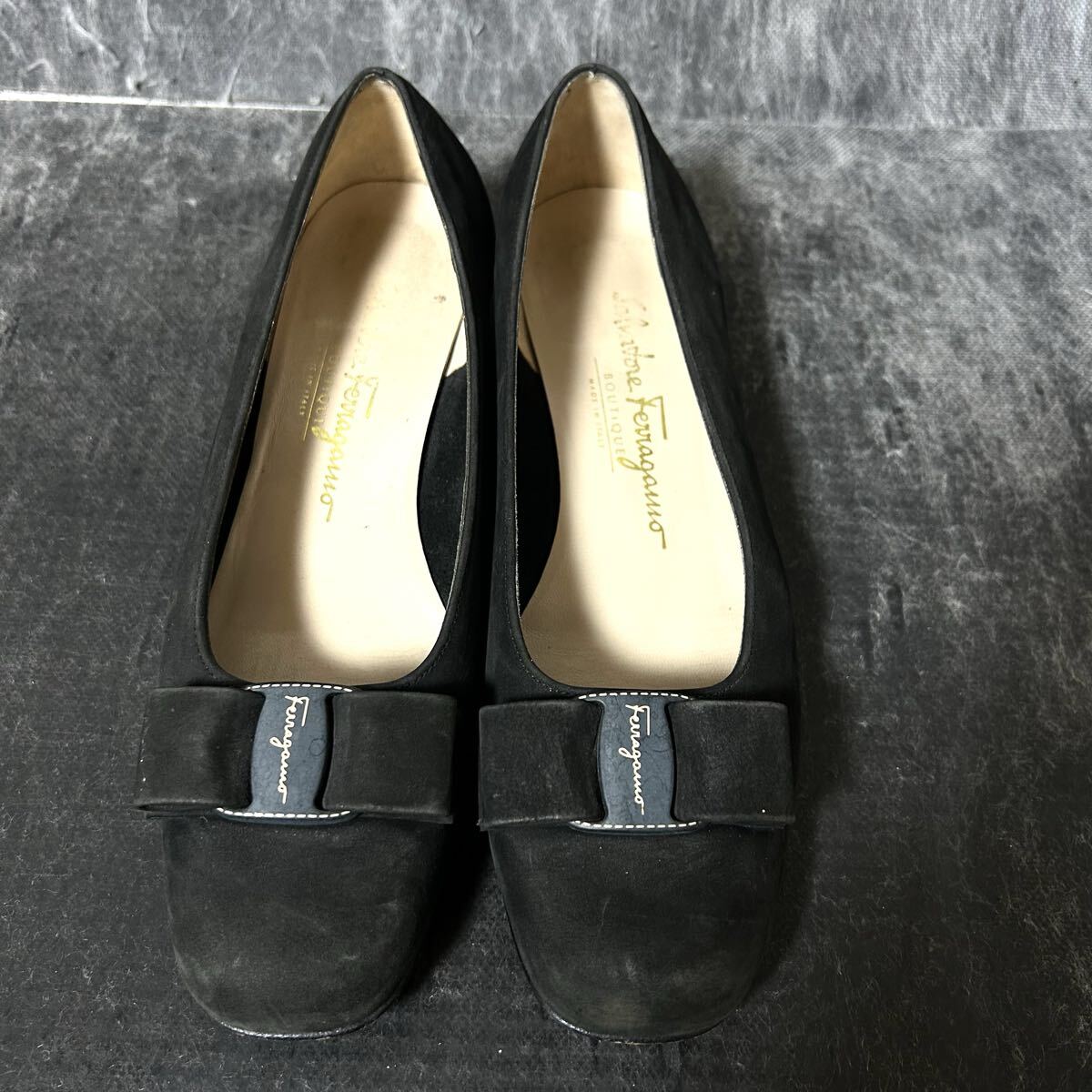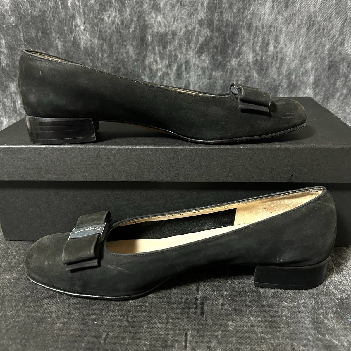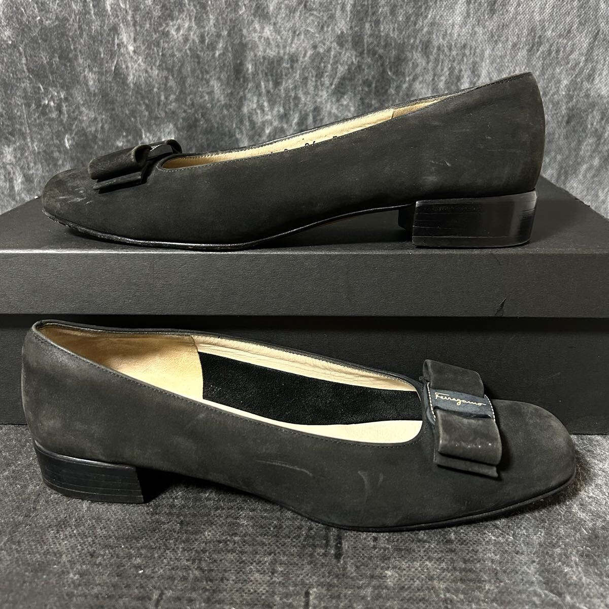 Salvatore Ferragamo サルバトーレ・フェラガモ ヴァラリボンパンプス ヌバック パンプス 7C 24.5cm ダークグレー *FB
