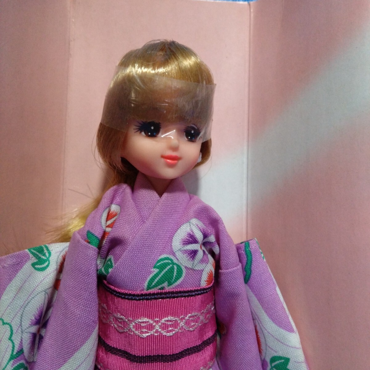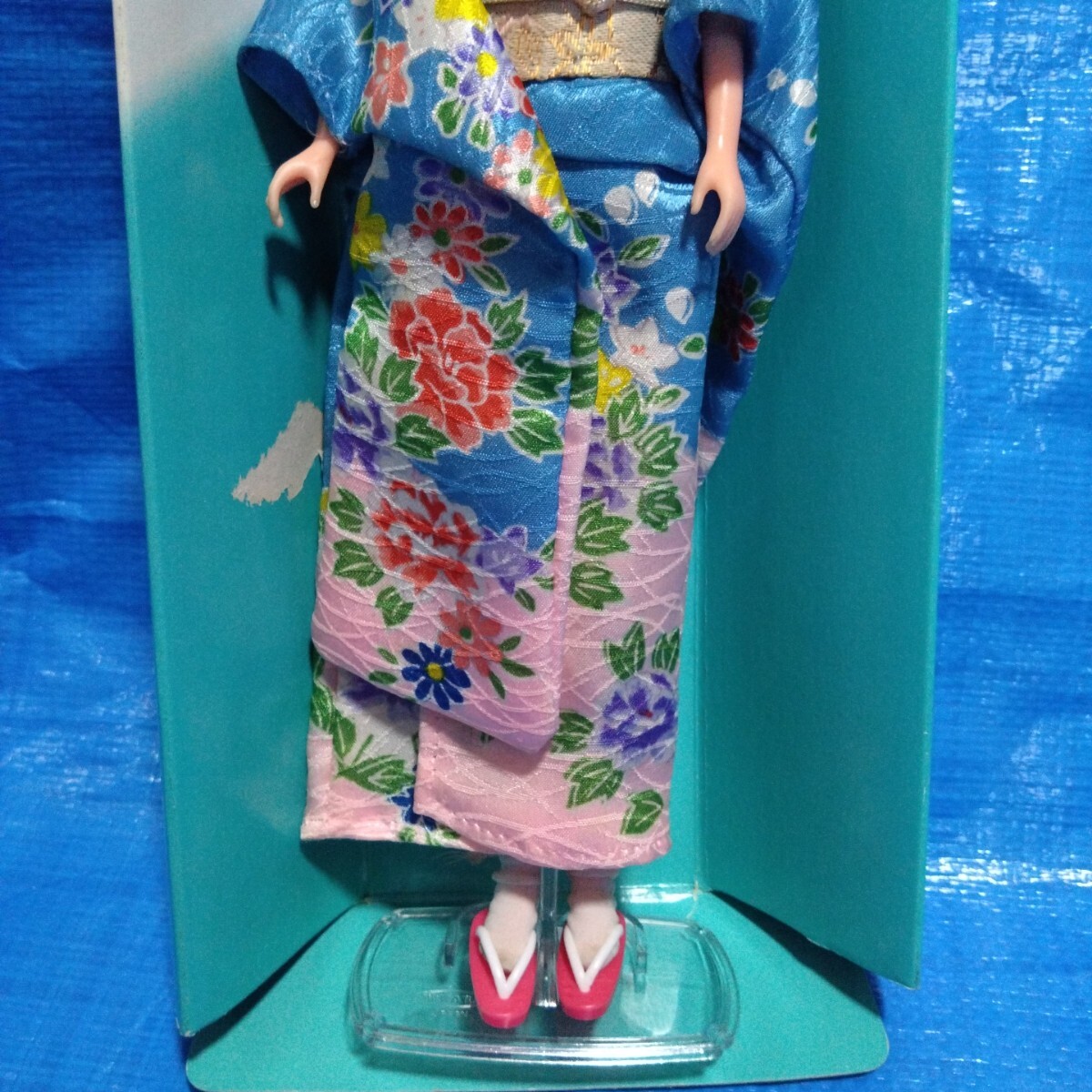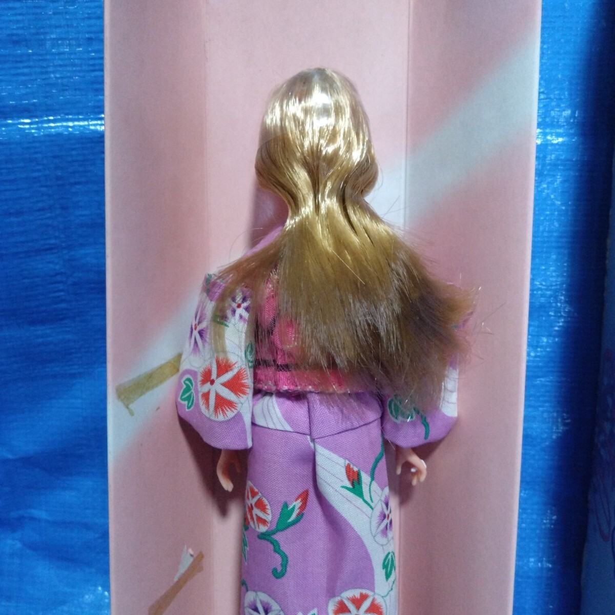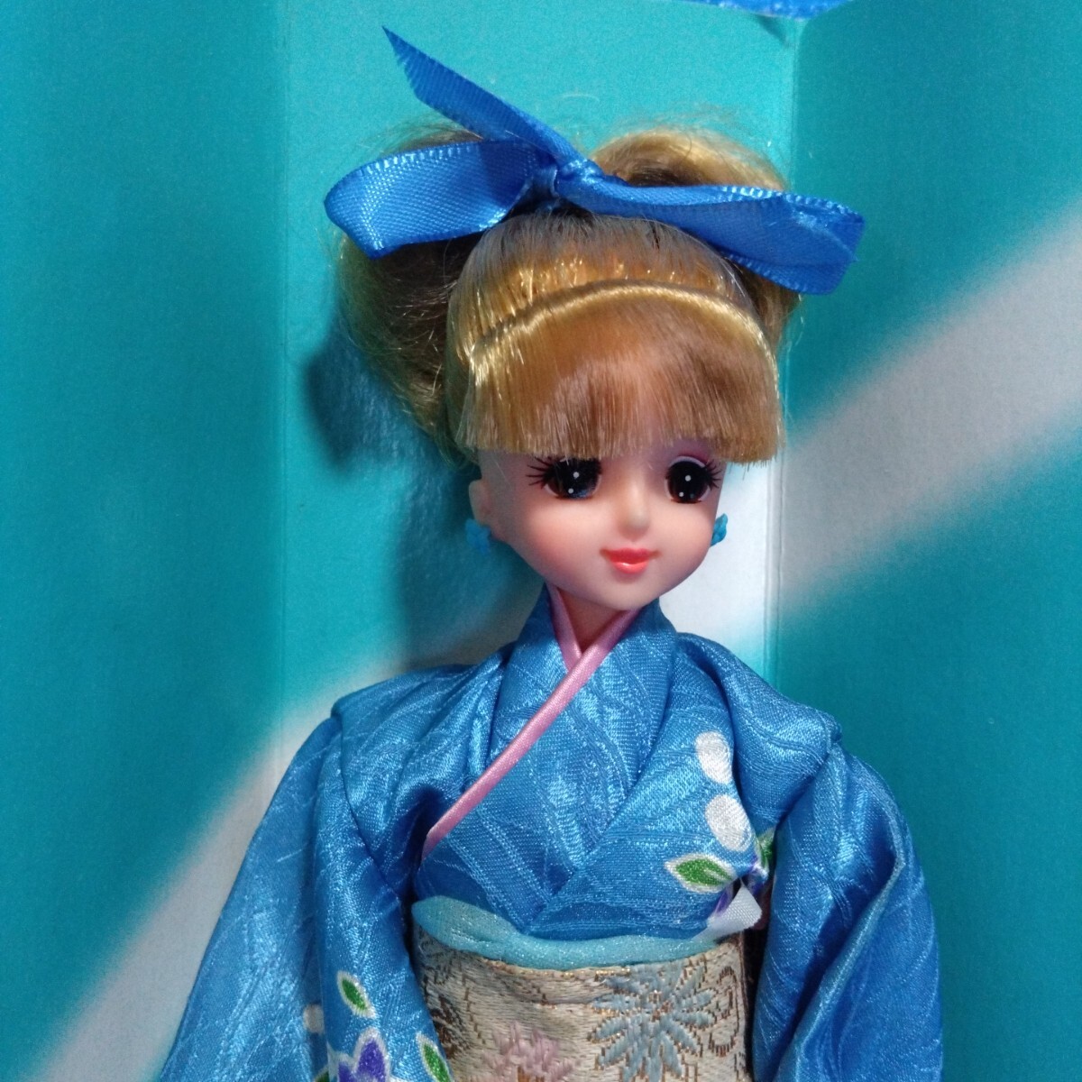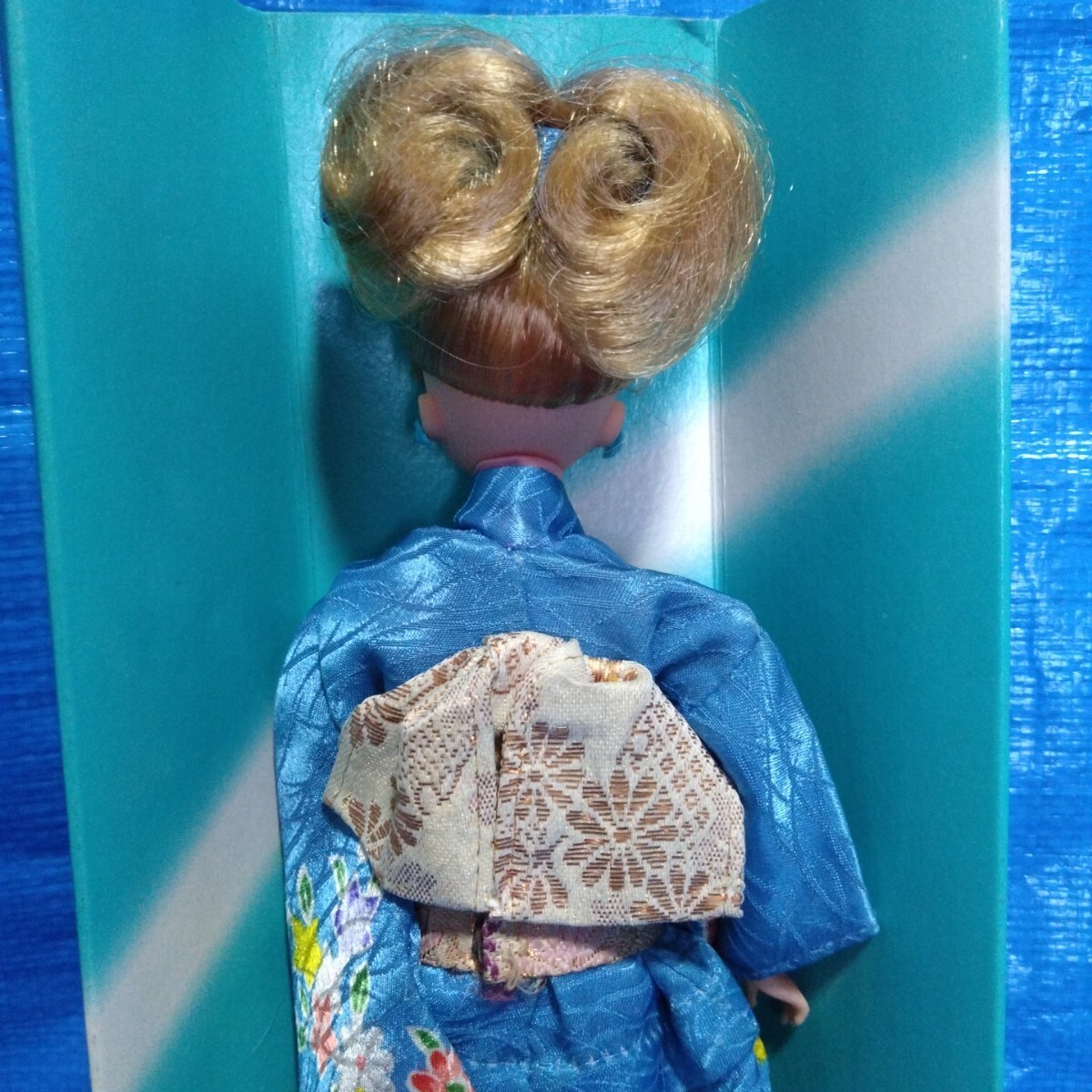 どちらも未使用に近く、浴衣は台紙から外したのみで、きものの子は、別のタカラバービーのきものを着せ替えた記憶です。多少使用感あるきものですが、大きな傷みや難はありません。リポンは市販のリボンで作ったものでデフォルトでは無いです。箱はどちらもかなり傷み、破損、汚れがあります。