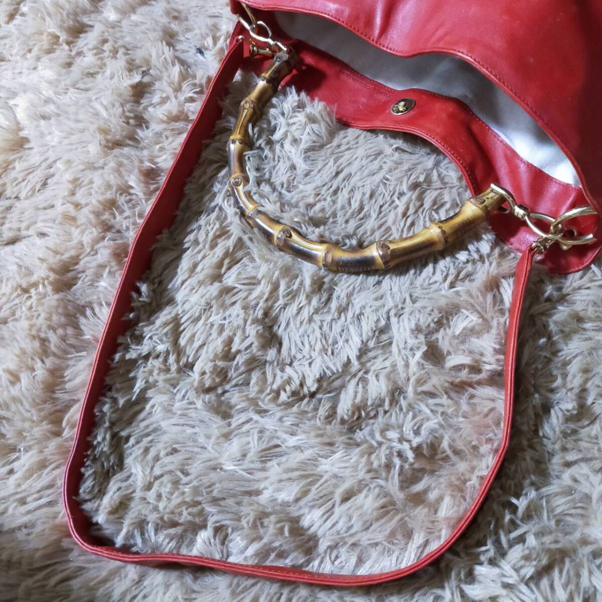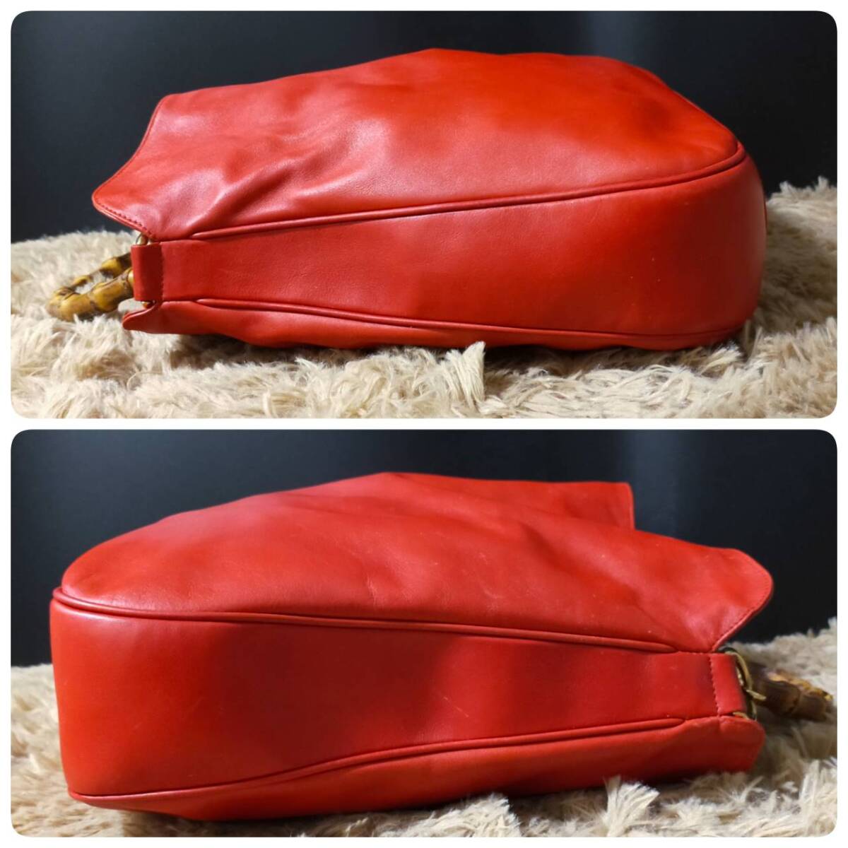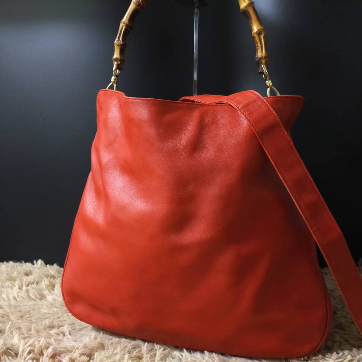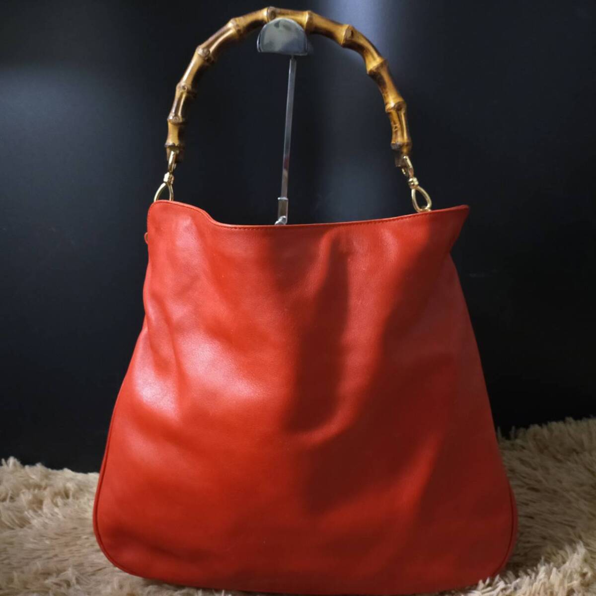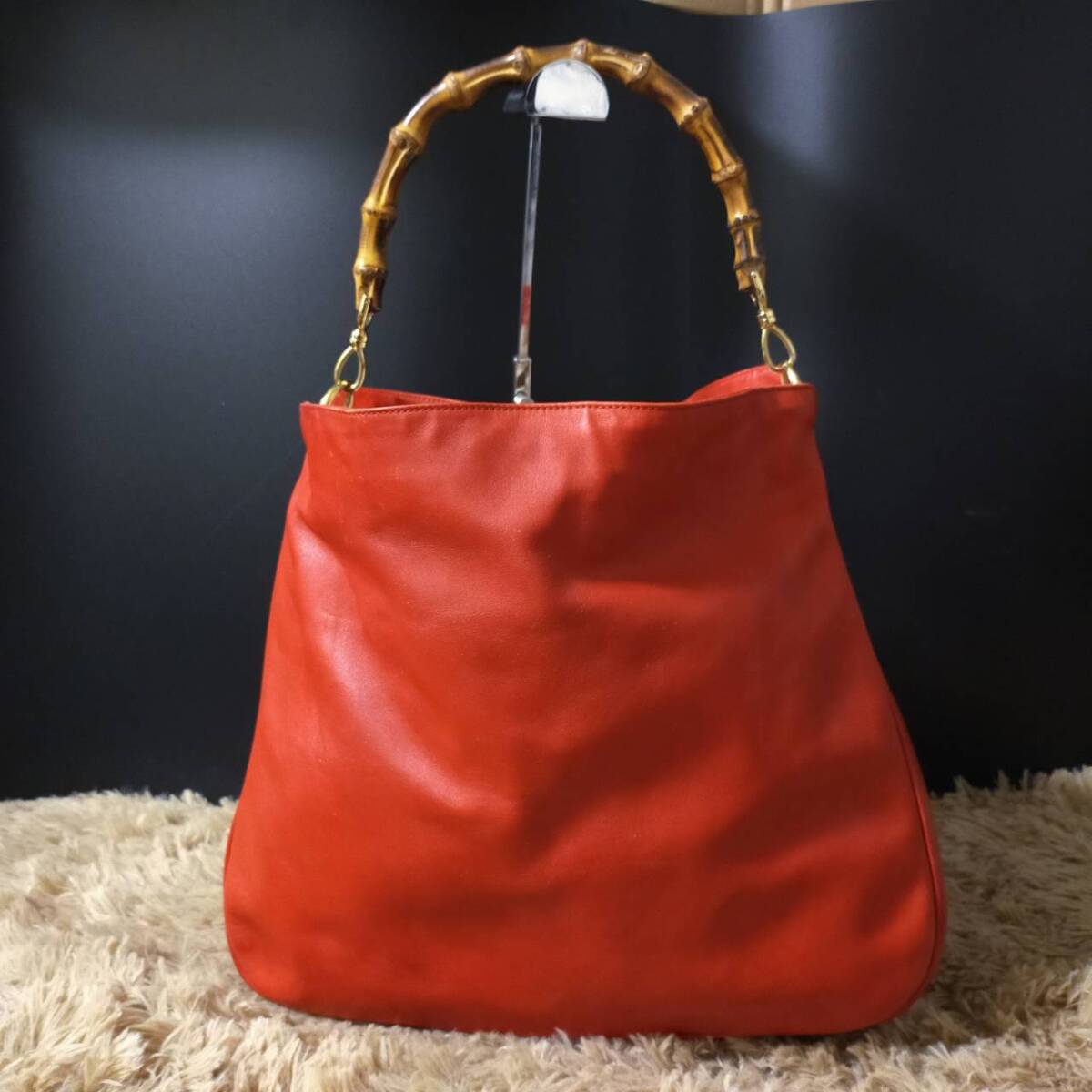 1円~【希少/美品】グッチ GUCCI ハンドバッグ トートバッグ 手提げ 肩掛け バンブー レザー 赤