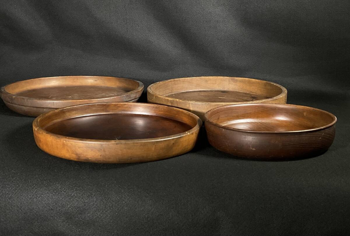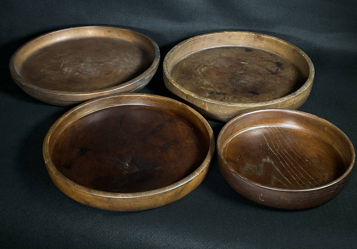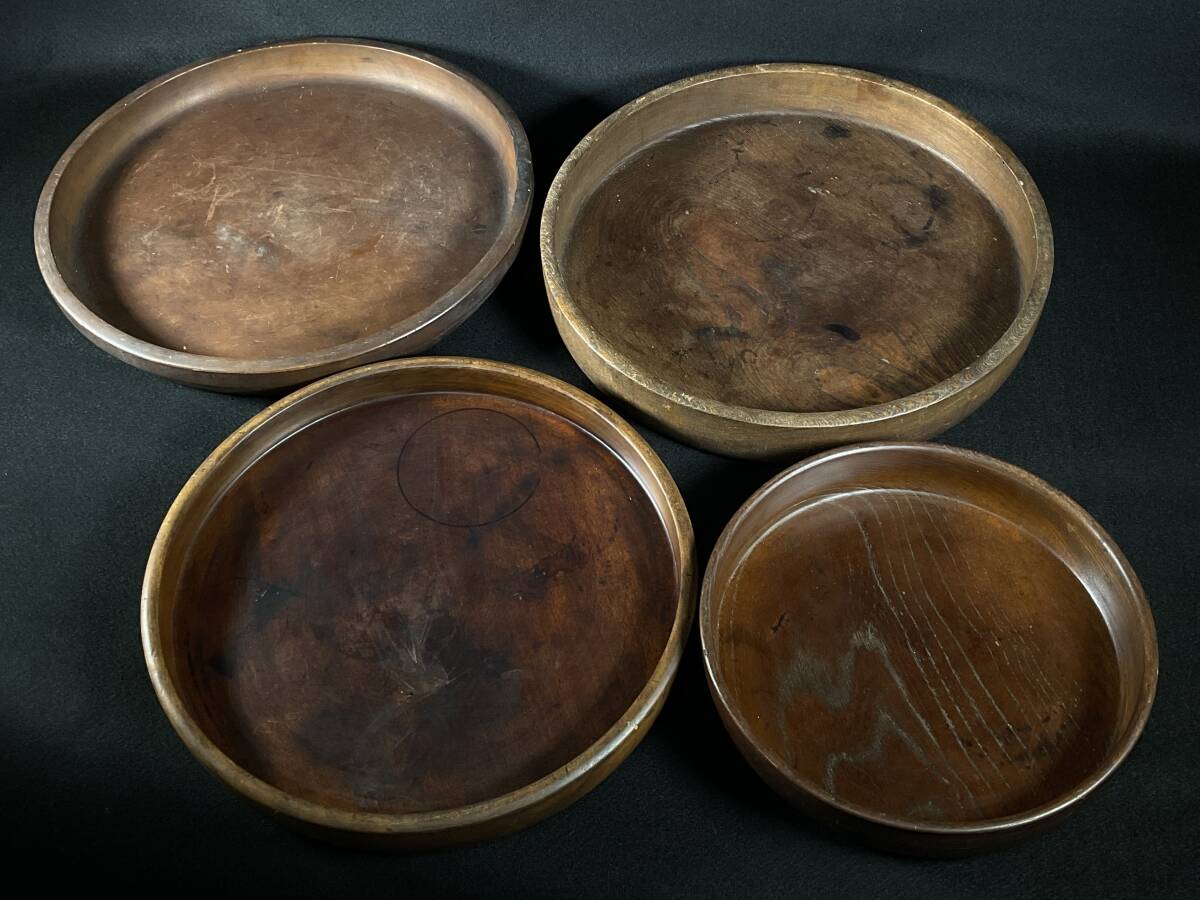 丸盆 煎茶盆 くりぬき盆 刳貫盆 4点 煎茶道具