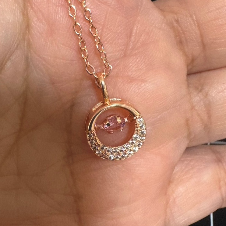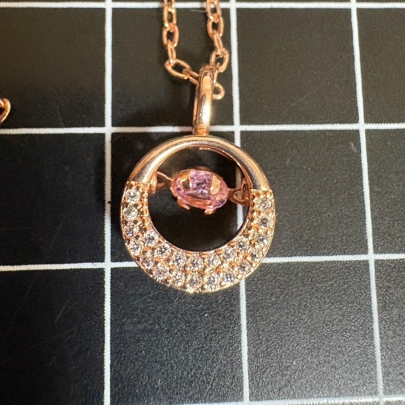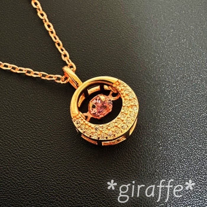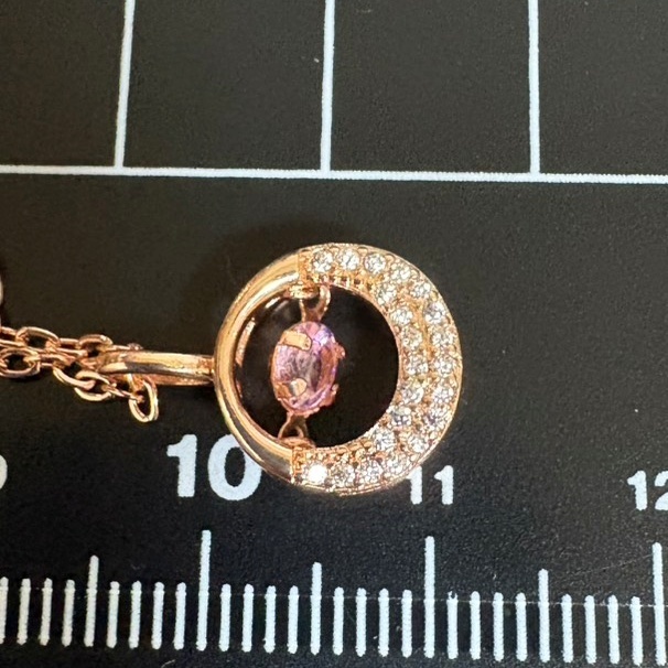 C324 匿名配送 ネックレス レディース ピンク ジルコニア 円形 ローズゴールド ペンダント アジャスター 調節可 ステンレス 上品