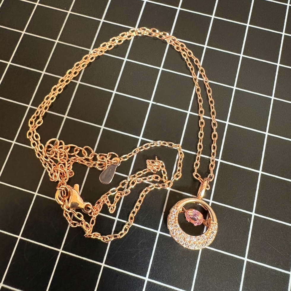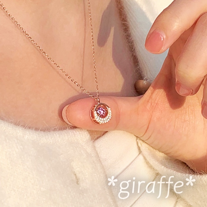 繊細に輝くでロマンティックなピンクジルコニアのネックレス。