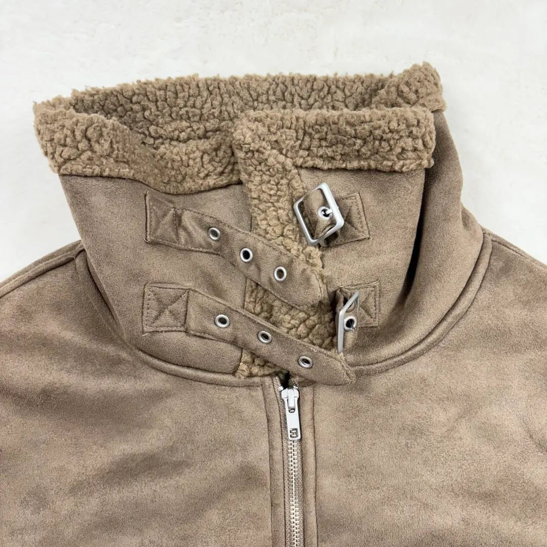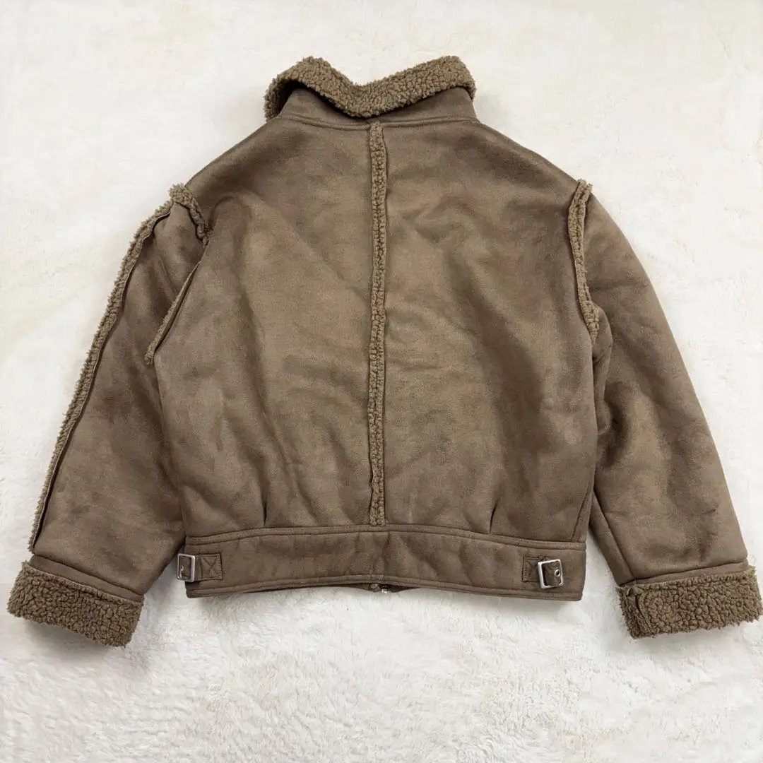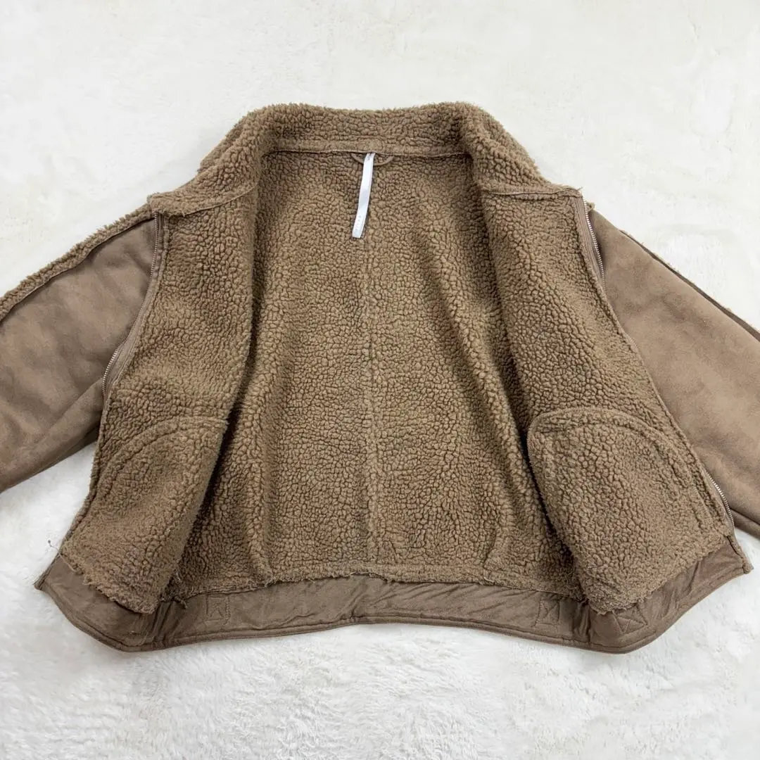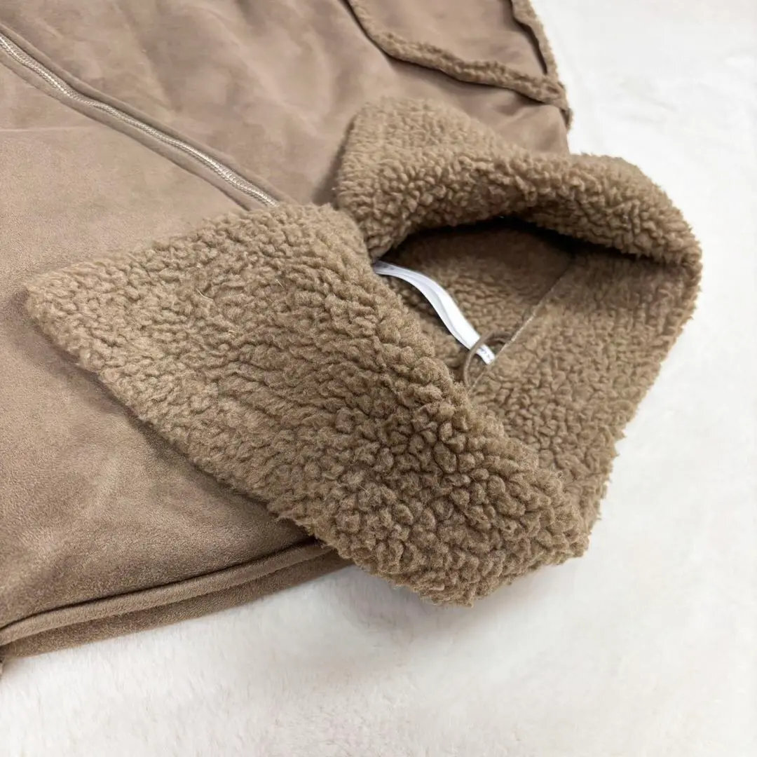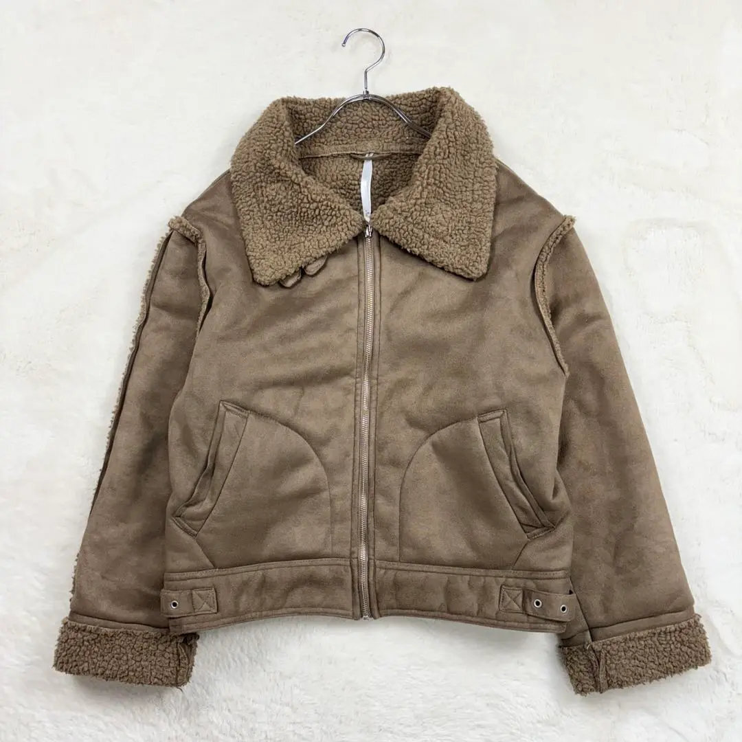ムルーア【F】茶 レディース ムートンジャケット 冬 アウター モード カジュアル ポケット有 暖か素材 K796