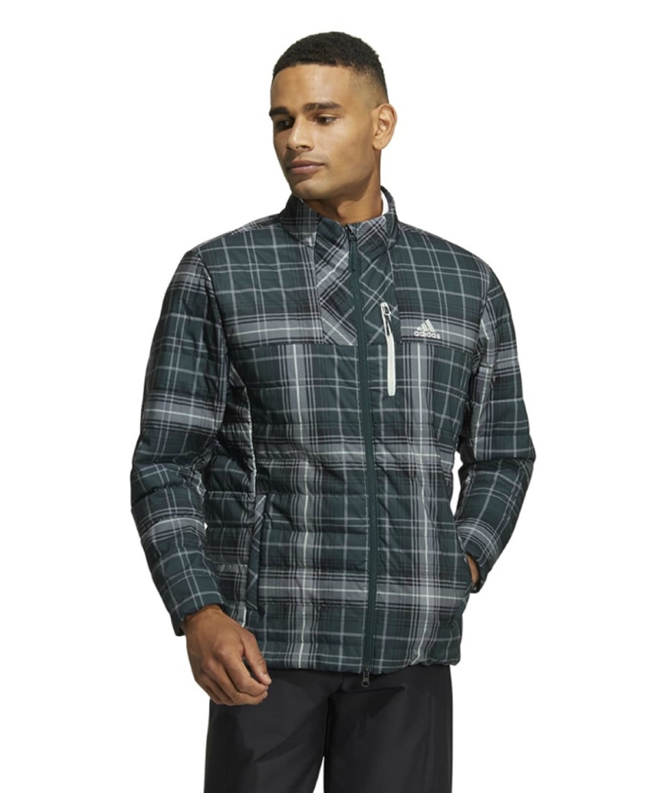 ゴルフコースで身体を暖かく保つには、ルックスは妥協せざるを得ないかもしれない。でも、このアディダスのゴルフジャケットなら、チェックの総柄プリントがスタイルをワンランクアップしてくれる。軽量の中わた入りの作りが、寒い日のラウンドで保温性を発揮。撥水仕上げを施しているから、軽い雨も気にならない。また、ラウンド後のクラブハウスでの打ち上げでも、テラス席を見つけて、ジャケットを着たまま快適に過ごせる。