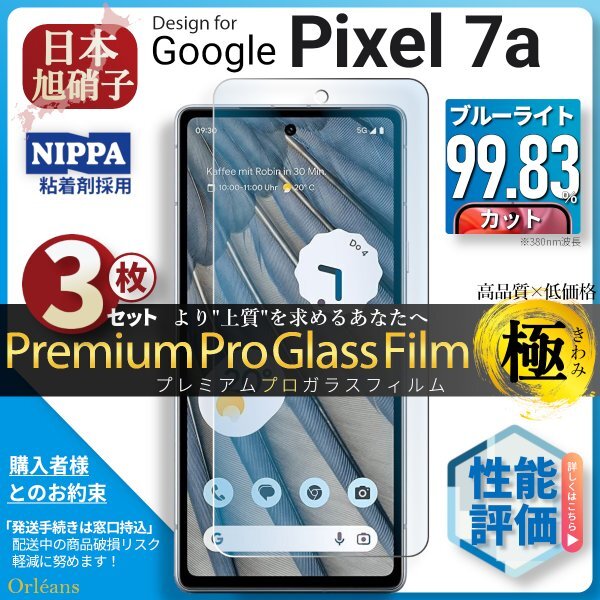 グーグル ピクセル 7a ブルーライトカット ガラスフィルム Google Pixel 7a 超得3セット 旭硝子 自動吸着 保護フィルム 液晶保護フィルム