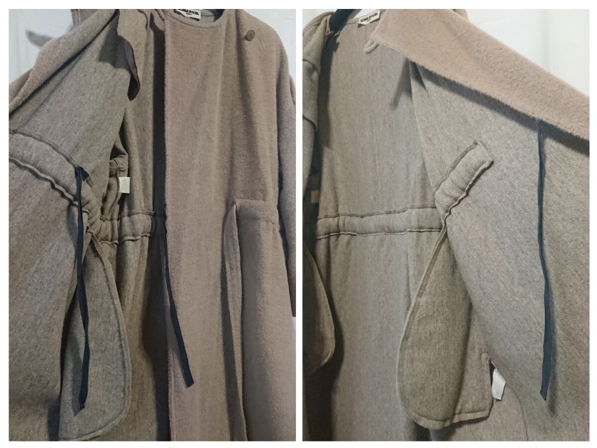 ※両肩パッドがついていますので気になれば切り外してください。着丈もございますのでオーバーサイズな感じで着用できると思います。ウエストは左右に紐が通してあり絞って調整できます。両再サイドポケットありです。ブランドタグ以外にフランスと日本のタグがみられますが印字が大分薄くなっております(画像にてご確認くださいませ)。