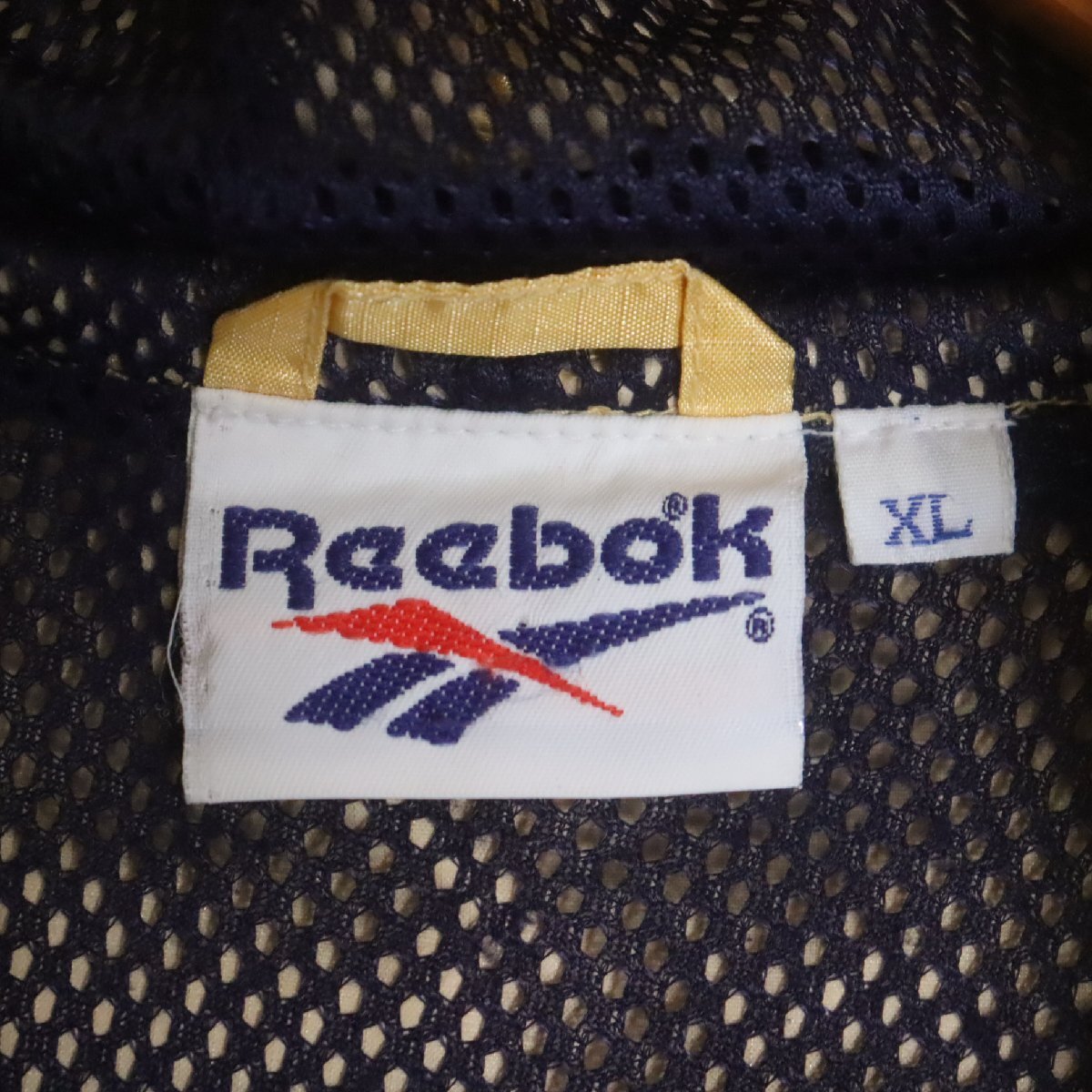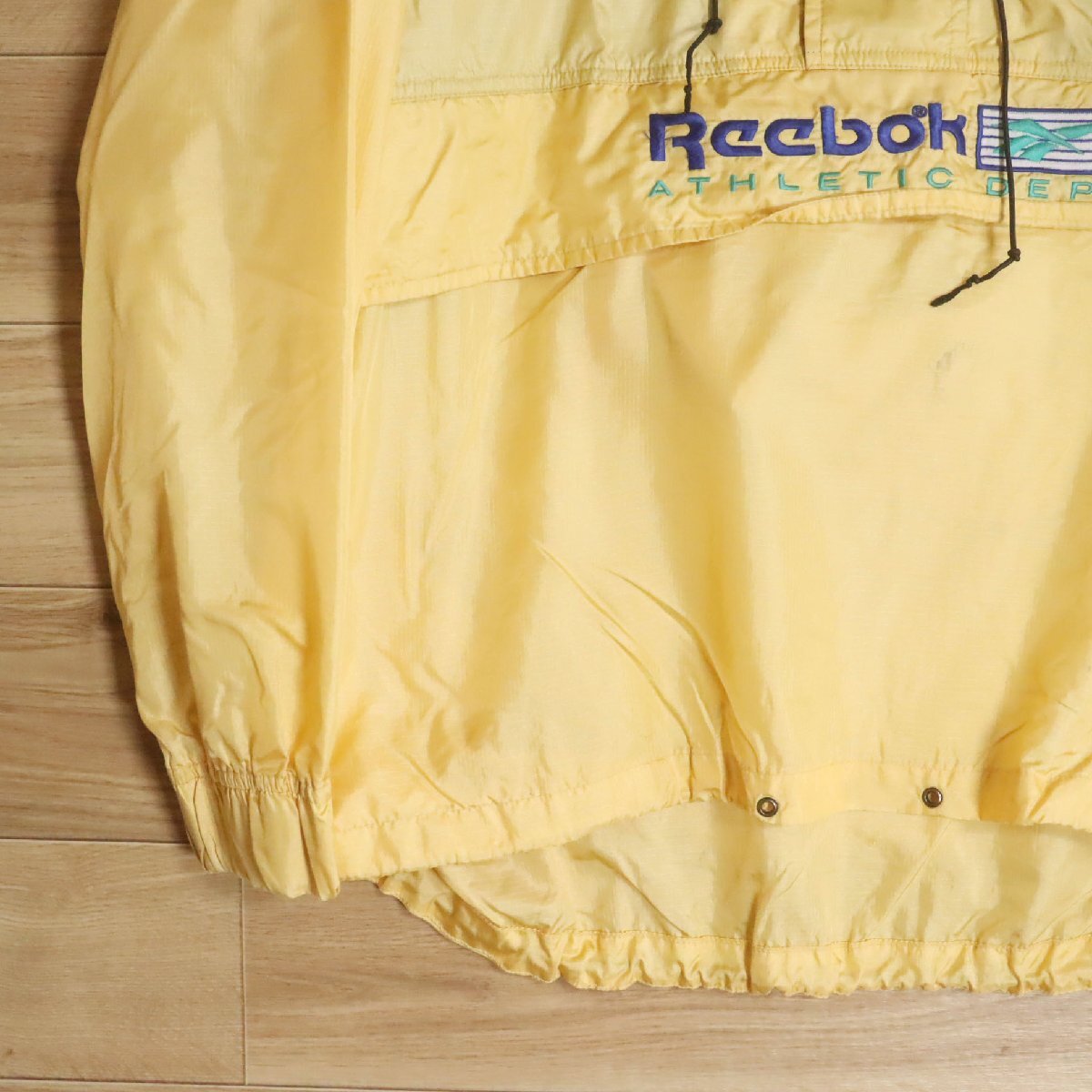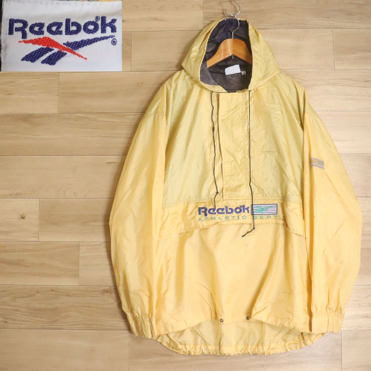 $3R/R6.10-5 90s Reebok リーボック ナイロンアノラックパーカー ハーフジップ 裏メッシュ ロゴ刺繍 ウィンドブレーカー XL