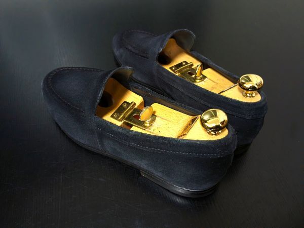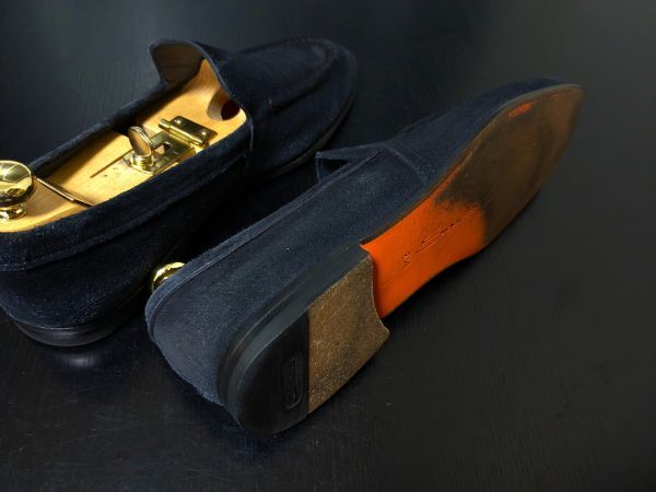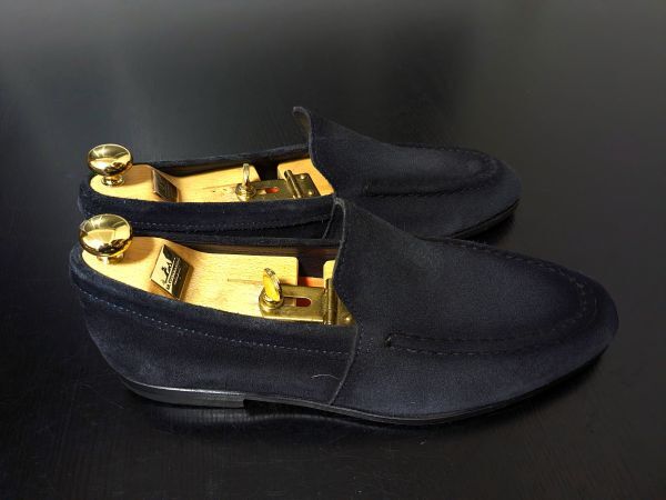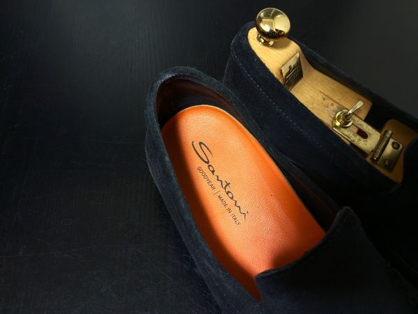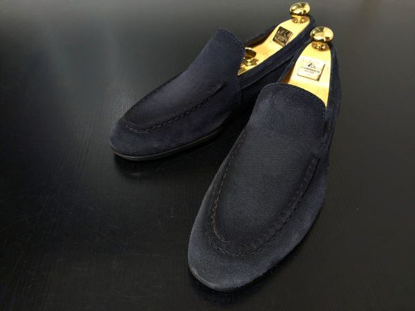 サントーニ 8.5 SANTONI 濃紺 ネイビースエード ソフトドレスローファー 1047