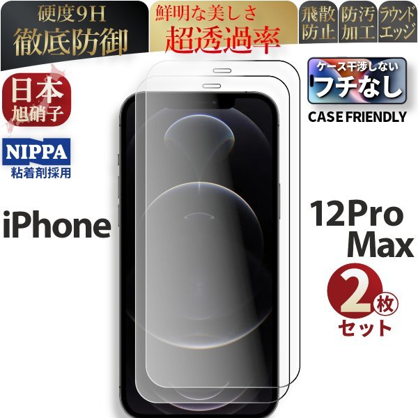 iPhone 12 ProMax 強化ガラスフィルム 保護フィルム 2枚セット 高品質 旭硝子 自動吸着 液晶保護フィルム