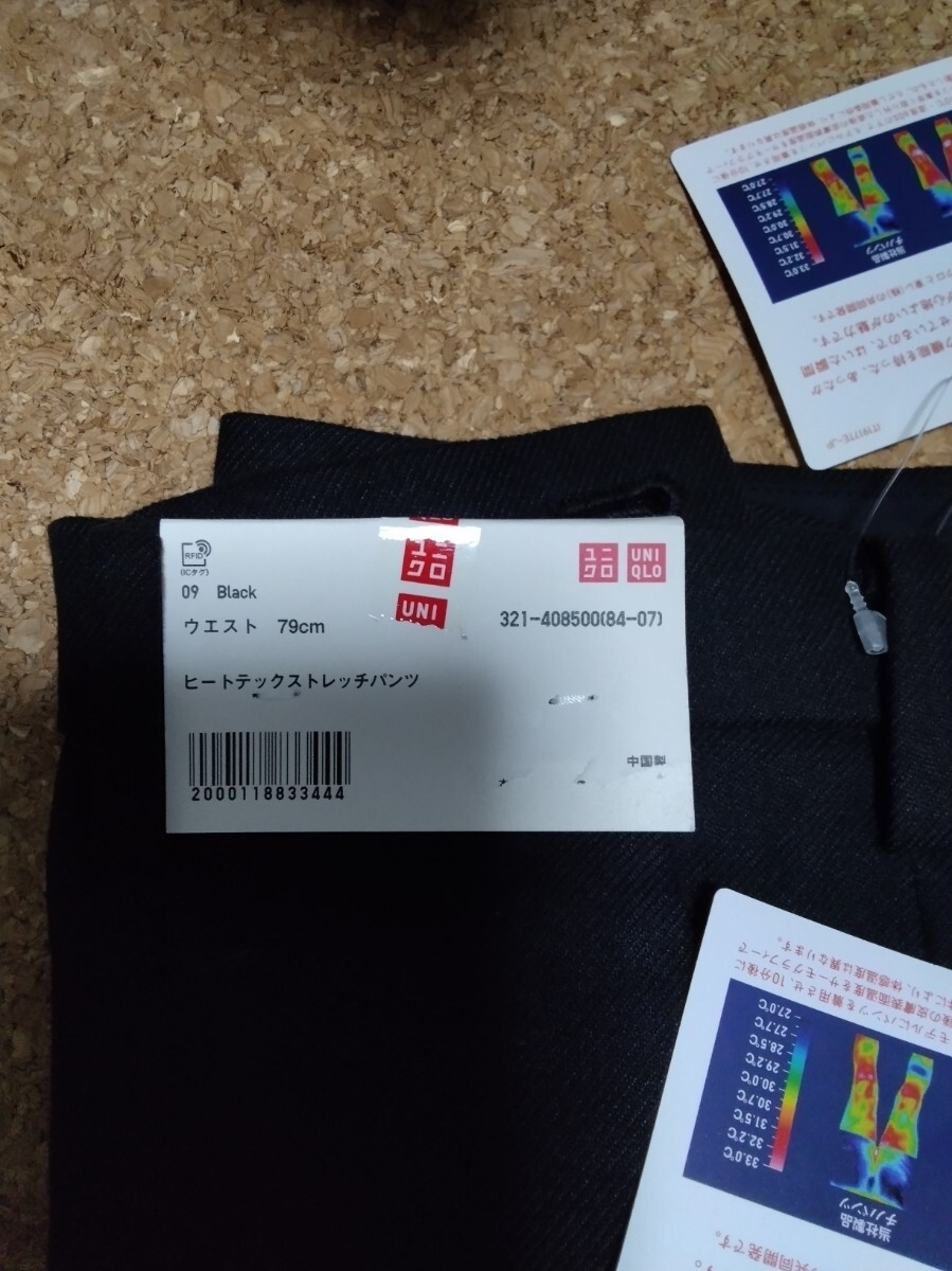 今回出品いたしますのは、【着払い発送限定☆未使用☆ユニクロ ヒートテックストレッチパンツ ウエスト79cm レングス約73cm 2点セット】となります。