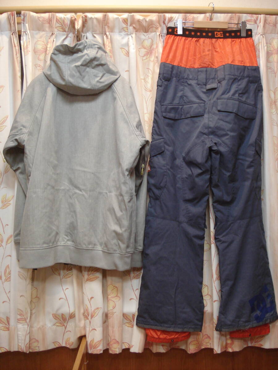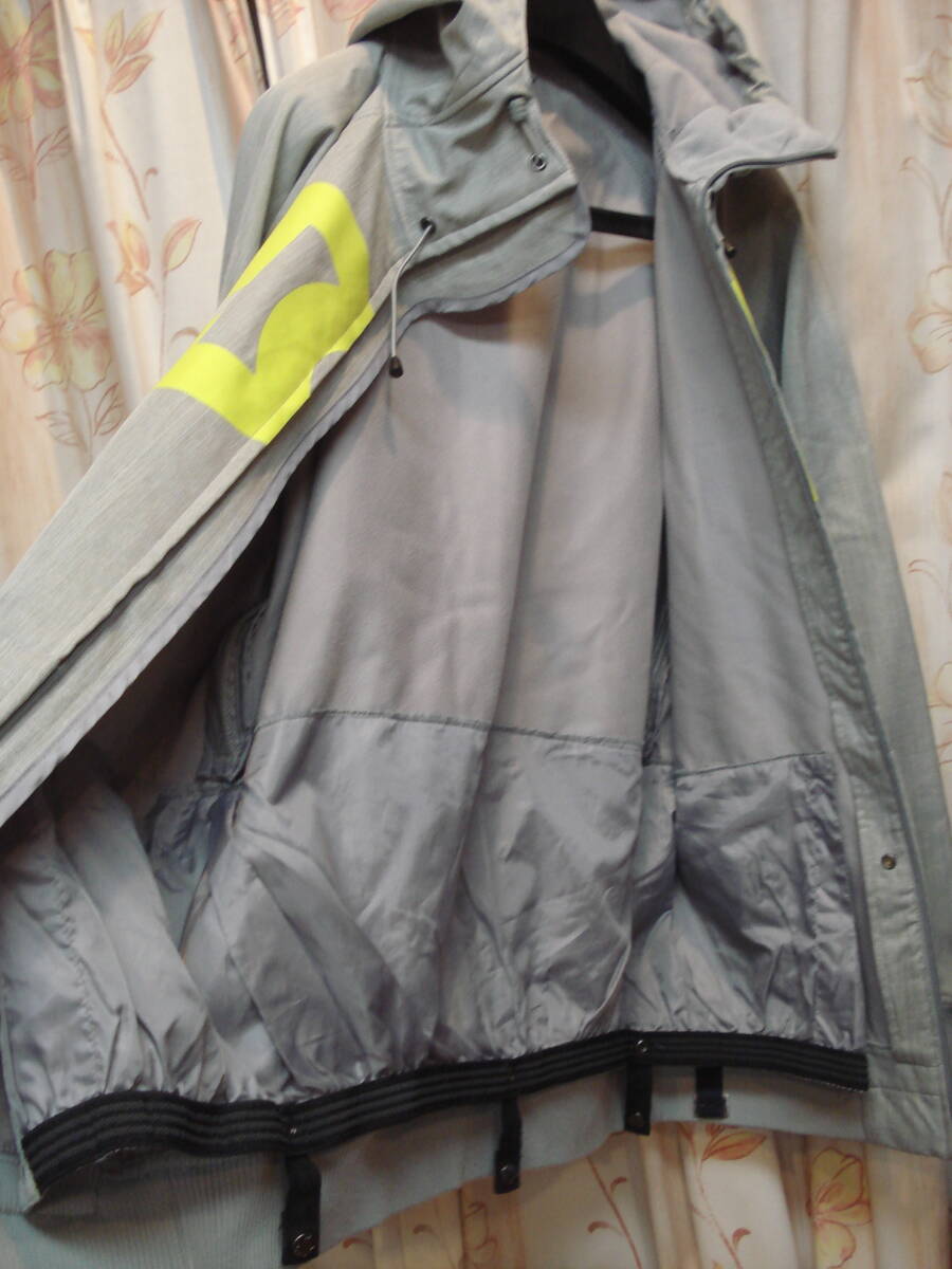 両脇下部 & 両股下内側部換気用チャック付き!オシャレスキー&スノボウエア上下セット!ウェスト:92cm以下サイドバンドにて調節対応可能!です。。色は、とてもオシャレな、「グレー色 & 紺色!」の、スキー&スノボウエア上下セット!です。。上着表示サイズは、「Lサイズ!」で、素人寸サイズは、「首の中心から袖先まで:96cm・着丈:79cm・脇下幅:65cm」で、パンツの表示サイズは、「Sサイズ!」で、「ウェスト:92cm以下ならサイドバンドにて調節対応可能!・股下:79cm・ズボン全長:106cm」です。。