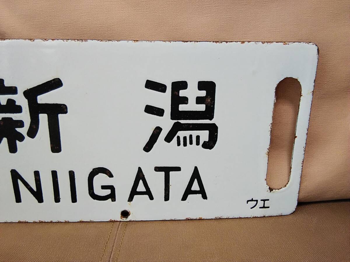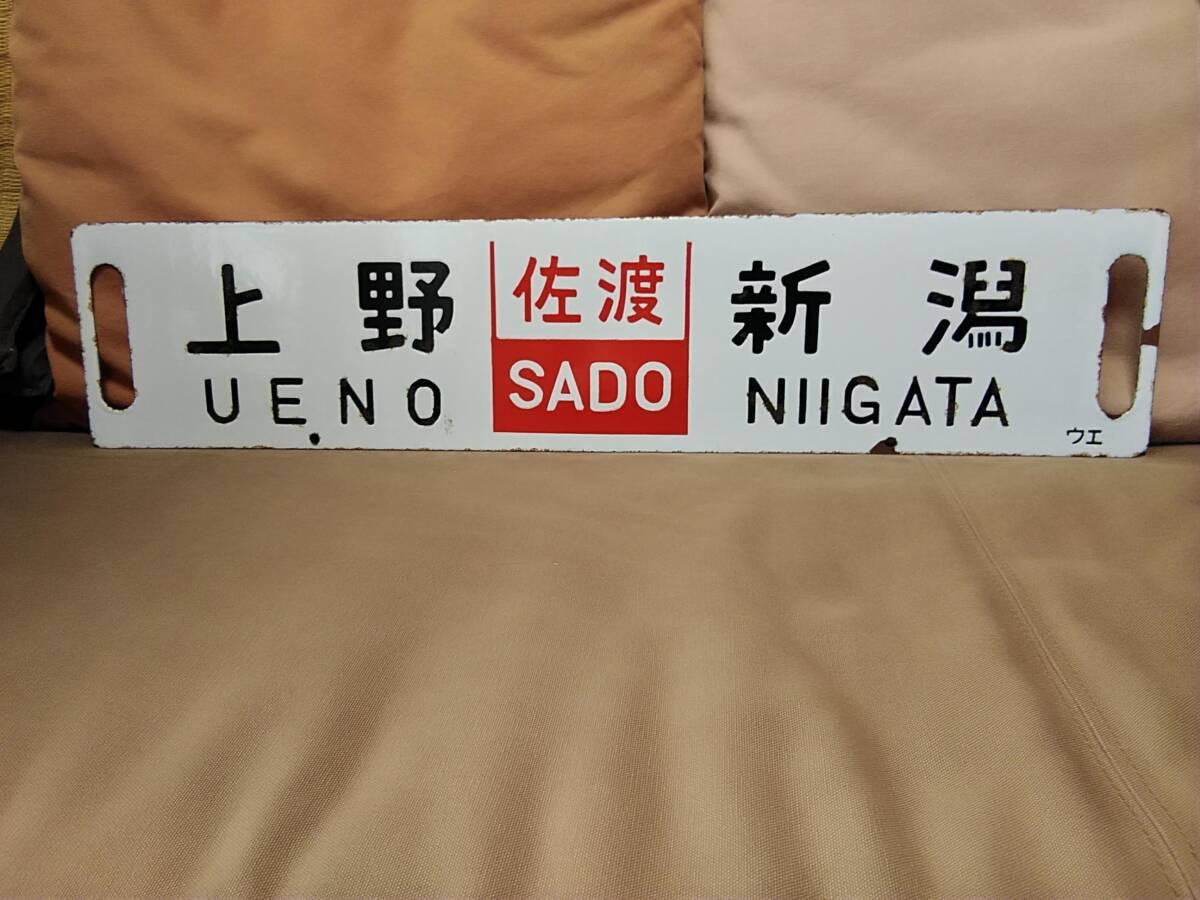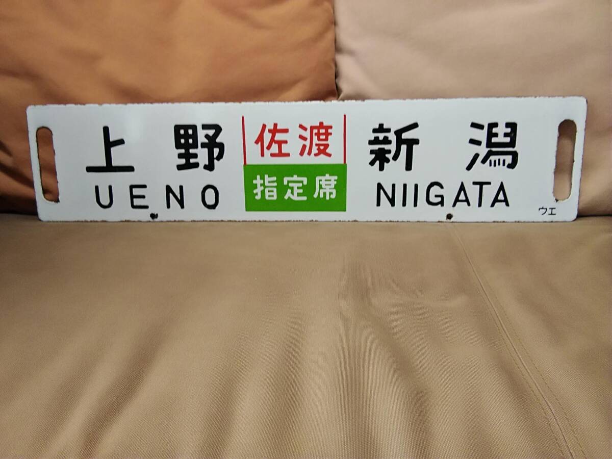 金属製 行先板 サボ 凹文字 上野 佐渡 新潟 ウエ 上野持ち × 上野 佐渡 指定席 新潟  国鉄 JR東日本 ホーロー 急行 165系
