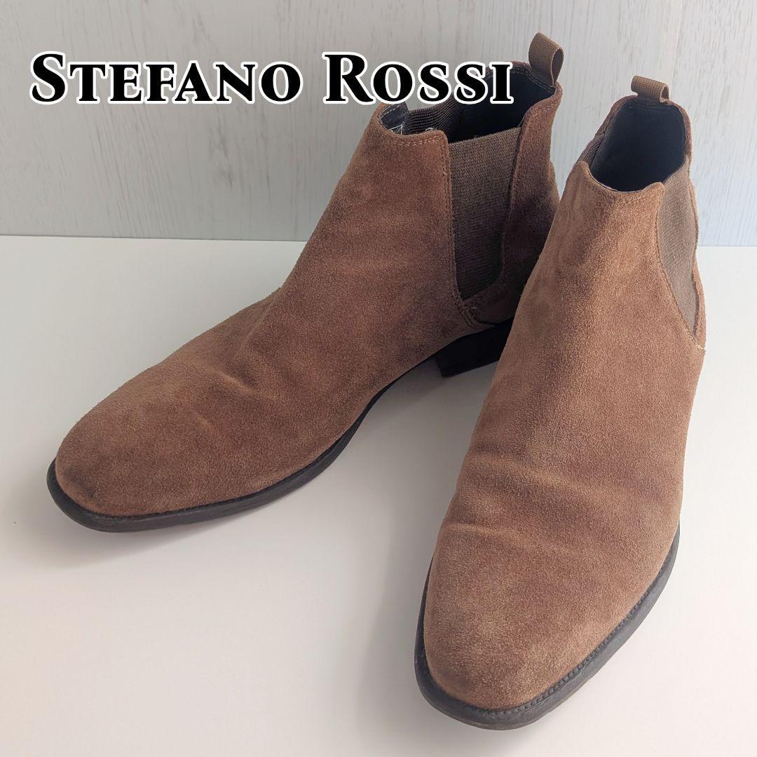 送料込み ステファノロッシ サイドゴアブーツ スエード ブラウン 25〜25.5cm EU40 メンズ stefanorossi