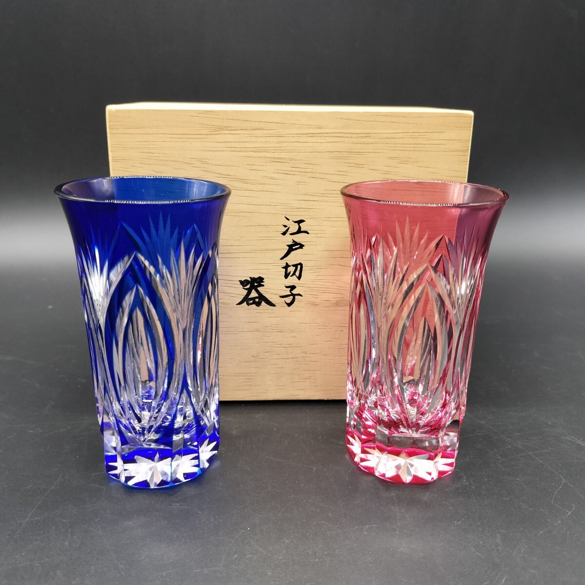 江戸切子 ビールグラス 切子グラス ペアグラス グラス 赤 青 酒器 冷酒グラス フ8