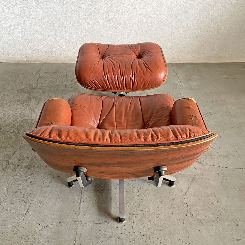 | コメント | ミッドセンチュリーを代表するデザイナー、Charles & Ray Eames(チャールズ&レイ・イームズ)夫妻が手掛けた「イームズラウンジチェア&オットマン | Eames Lounge Chair and Ottoman」。 Herman Miller (ハーマンミラー)社より1956年に発売されて以来、不動の人気を誇る逸品です。 今回は、ブラジリアンローズウッドのプライウッドにブラウンレザーのスタンダードな組み合わせ。力強い杢目と明るくカジュアル感のあるカラーリングがモダンながら温かみのある雰囲気を醸し出します。 見た目の秀逸さもさることながら座り心地もまた最高。身体にフィットする掛け心地と適度な弾力を持つクッションにより、頭から足先まで全身をゆったりと預けられます。 なおこちらは1970-80年代に製造・販売されたビンテージの1台となります。 高級感漂うルックスと無二のデザインは形を変えることなく長年愛され続け、MoMAパーマネントコレクションやシカゴ美術館などにも収蔵されるなど、言わずと知れた名作中の名作。 極上の快適さとビンテージの希少性を同時に味わうことのできるをラウンジチェアを、どうぞお見逃しなく。 ※当ショップは、主にリサイクル品を取り扱っております。基本的にUSED品である事をご理解頂き、ご入札をご検討下さいませ。 |