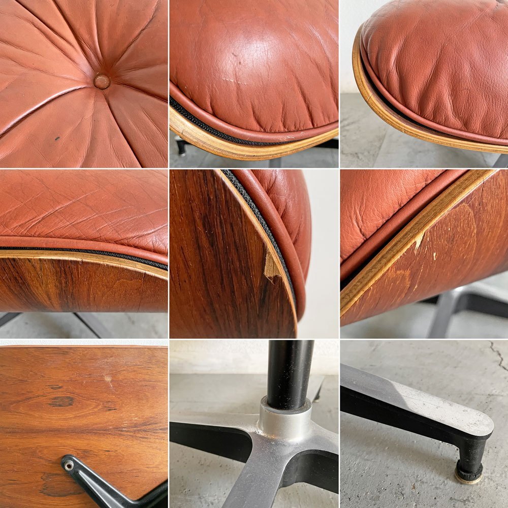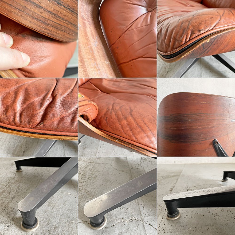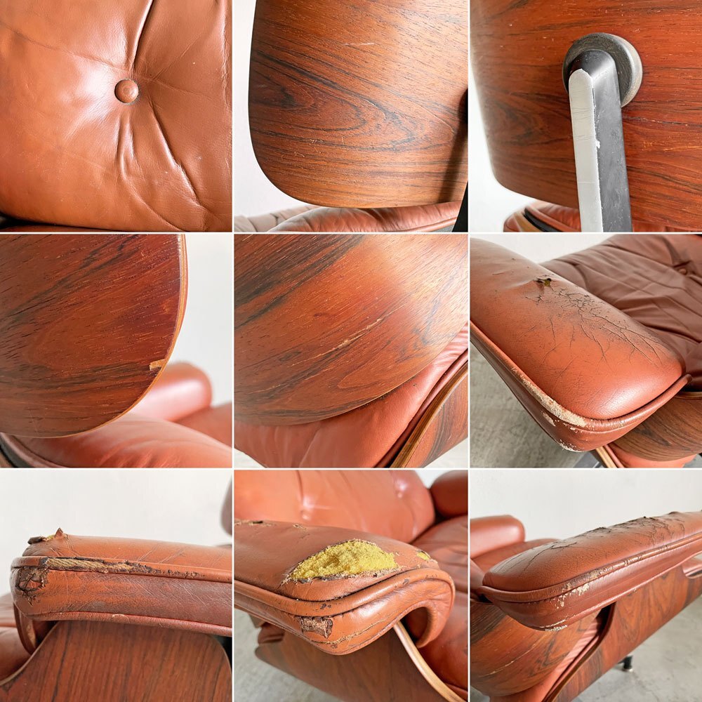 | コンディション | こちらはビンテージのお品物です。レザーには擦れや傷、表面の削れやひび割れ、破れ、取り切れないくすみや黒ずみ、付着汚れが散見されます。特にチェアのアーム部分の傷みが著しく、内部ウレタンの飛び出しがございます。また、脚部などのスチール部分にはくすみ汚れや擦れ傷、縁の削れやガリ傷が見受けられるとともに、ゴムパーツには劣化に伴う亀裂が確認できます。なお、チェアの背もたれ下段を留めるビスが欠品しておりますが、フックにて固定されているため着座時にはさほど影響はございません。通常使用は問題なく行えますが、経年なりのダメージや使用感のあるコンディションを加味したお求めやすい価格での販売となります。ぜひこの機会にご検討くださいませ。 *ラウンジチェア&オットマン(2点セット)での販売です。 ※特筆すべきコンディションは出来るだけ記載させて頂きますが、細かい擦れや傷、汚れ等を完全にお伝えする事は出来ません。画像をご確認の上、ご入札をご検討下さいませ。 ※取扱説明書や保証書等は記載が無い限り付属いたしません。 |