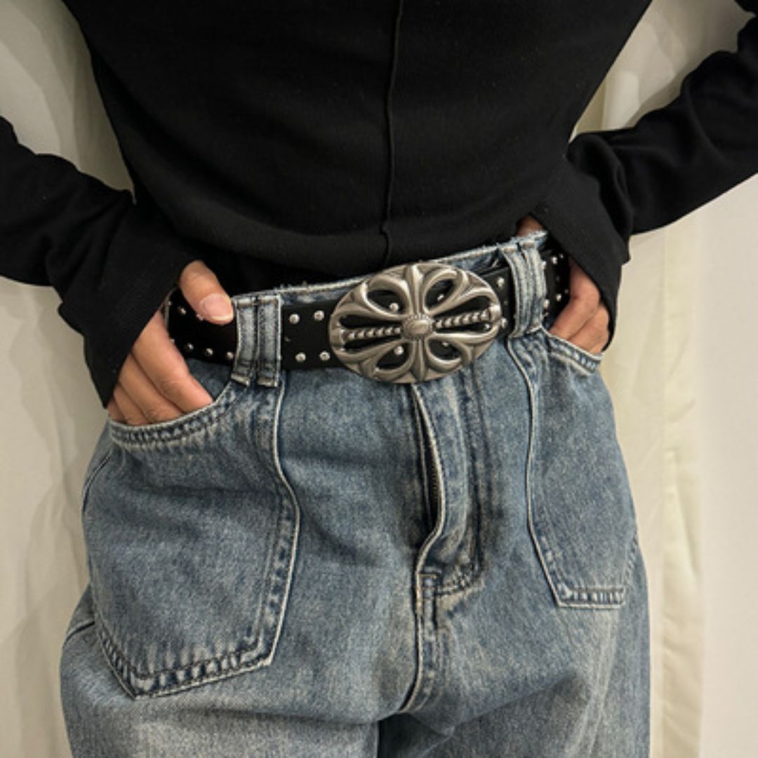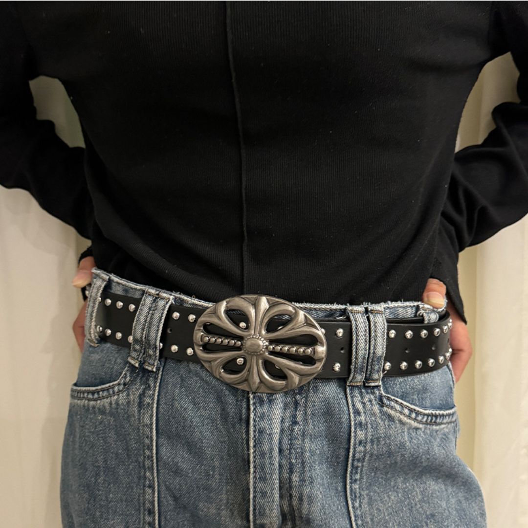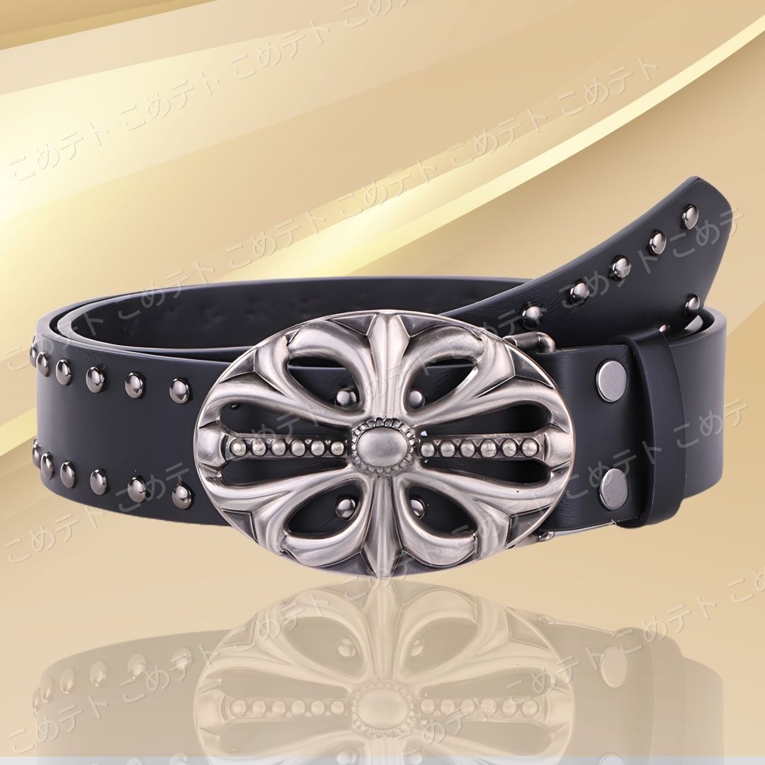 ベルト 黒 スタッズ クロス バックル 十字架 y2k グランジ パンク アメカジ ロック ストリート 古着 メンズ レディース レザー 革
