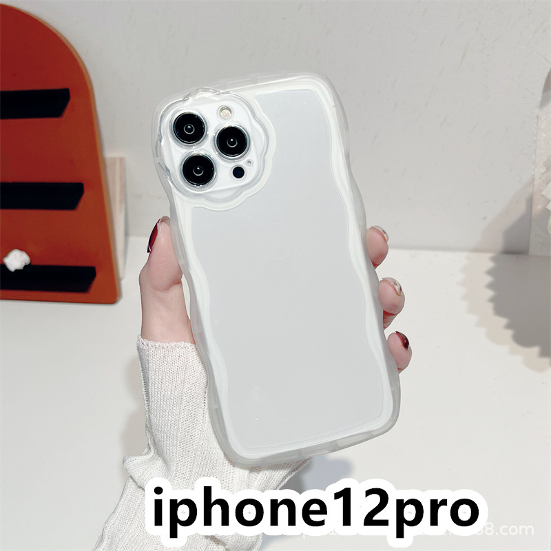 iphone12proケース カーバー TPU 可愛い 透明 波型花 お洒落 軽量 ケース 耐衝撃高品質ホワイト