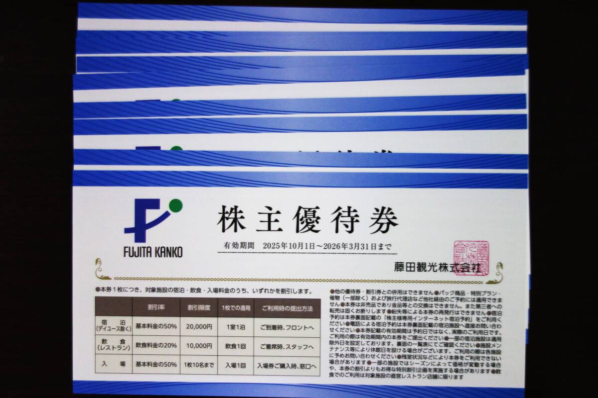 藤田観光 株主優待券 10枚セットになります(日帰りご利用券はありません)