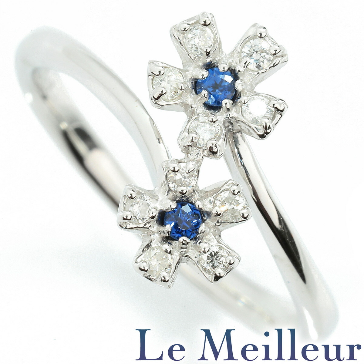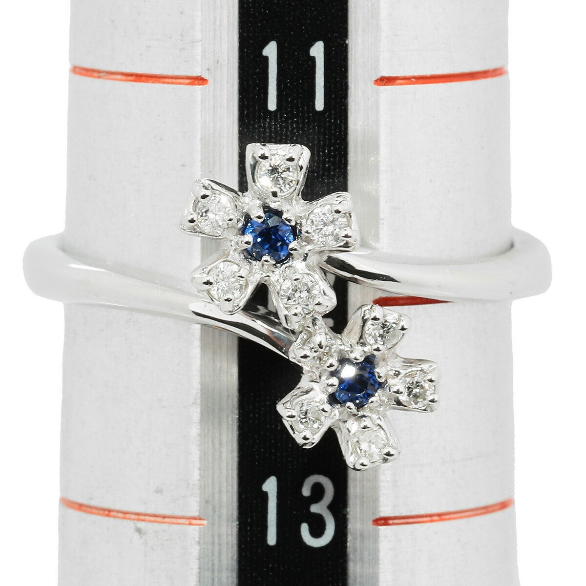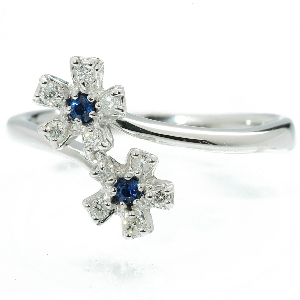 曲線 花 可憐 可愛いデイリー 普段使い キラキラ エレガント 9月 誕生石 サファイヤ ラウンドミックス 18金 WG 20代 30代 40代 50代 60代 70代 USED ユーズド 中古 リユース リング・指輪 LEOH4601